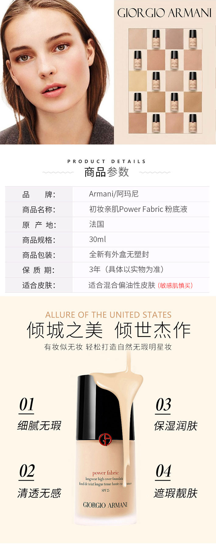 【中欧班列精选】意大利 Armani/阿玛尼初妆亲肌Power Fabric粉底液 30ml /瓶 多种规格可选 LPY1