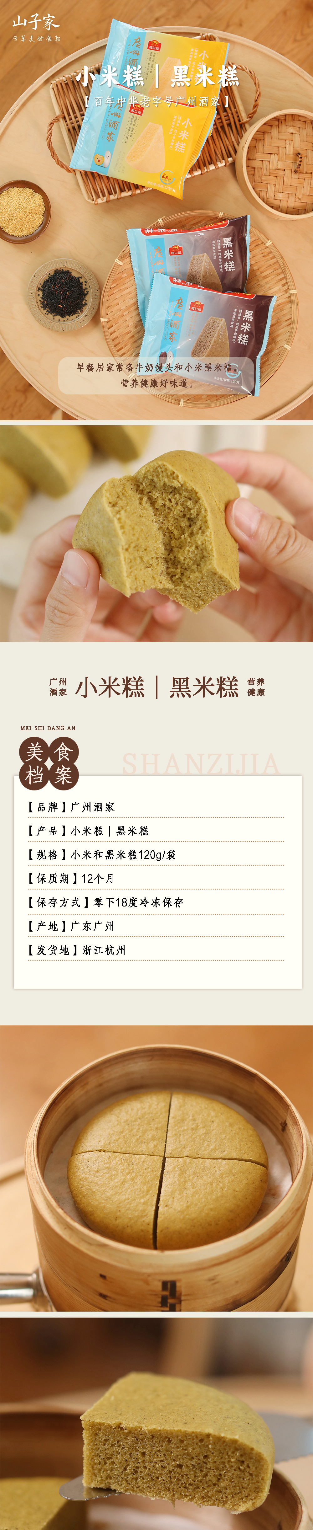 广州酒家小米糕/黑米糕120g/袋 云朵口感轻盈细腻 配料干净老少皆宜