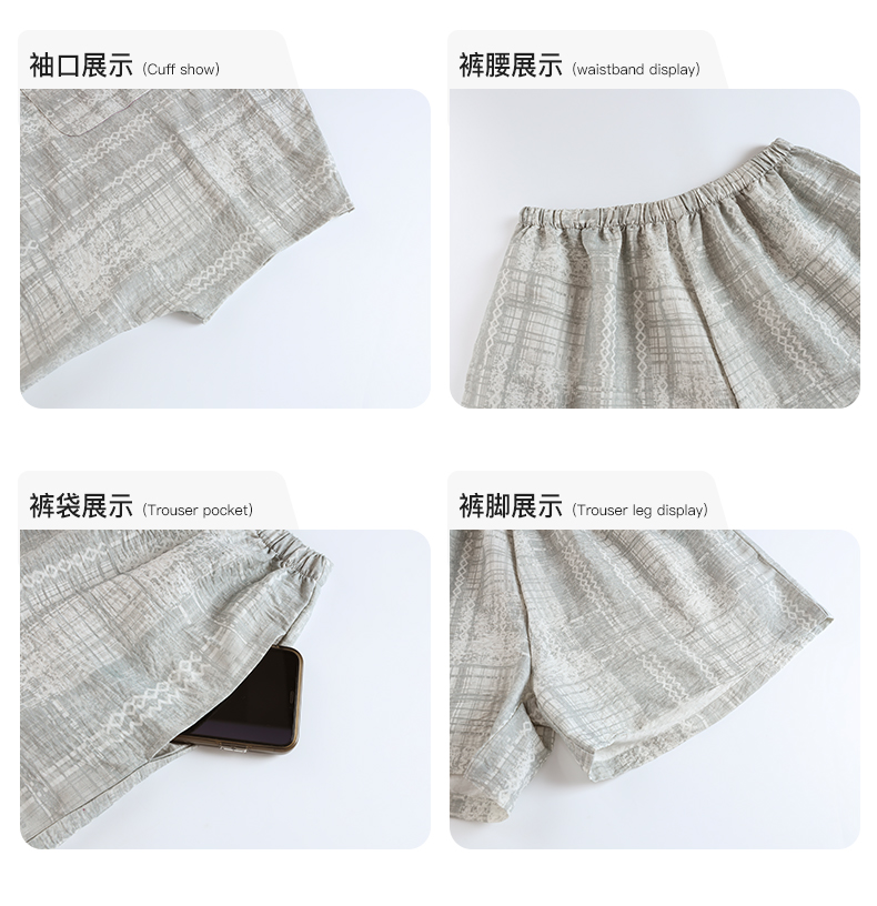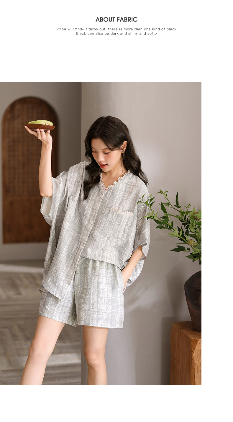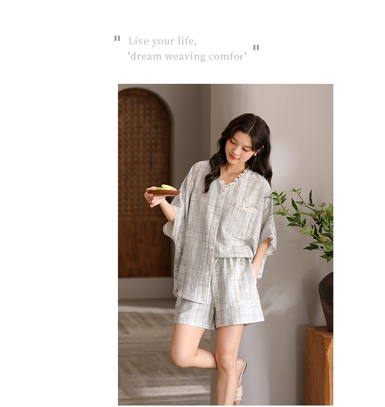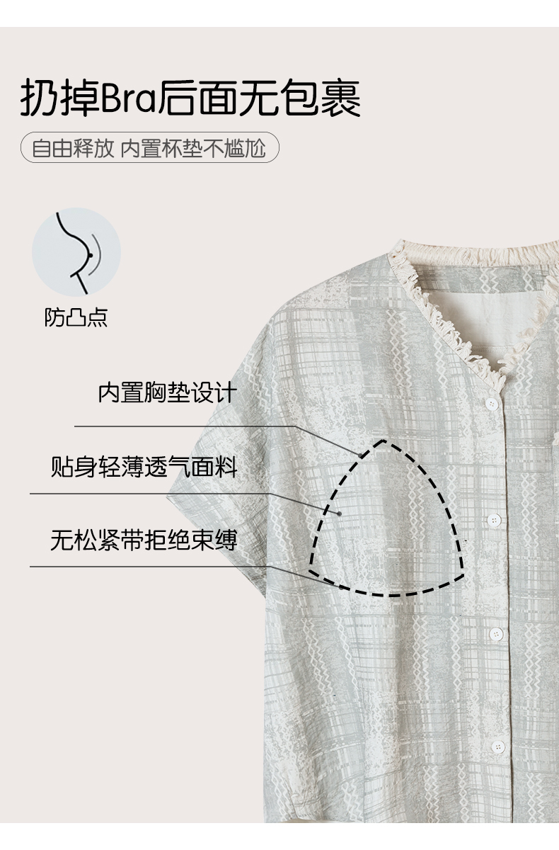 可人儿小众设计泡泡绵女士带胸垫睡衣夏季短袖可外出家居服三件套