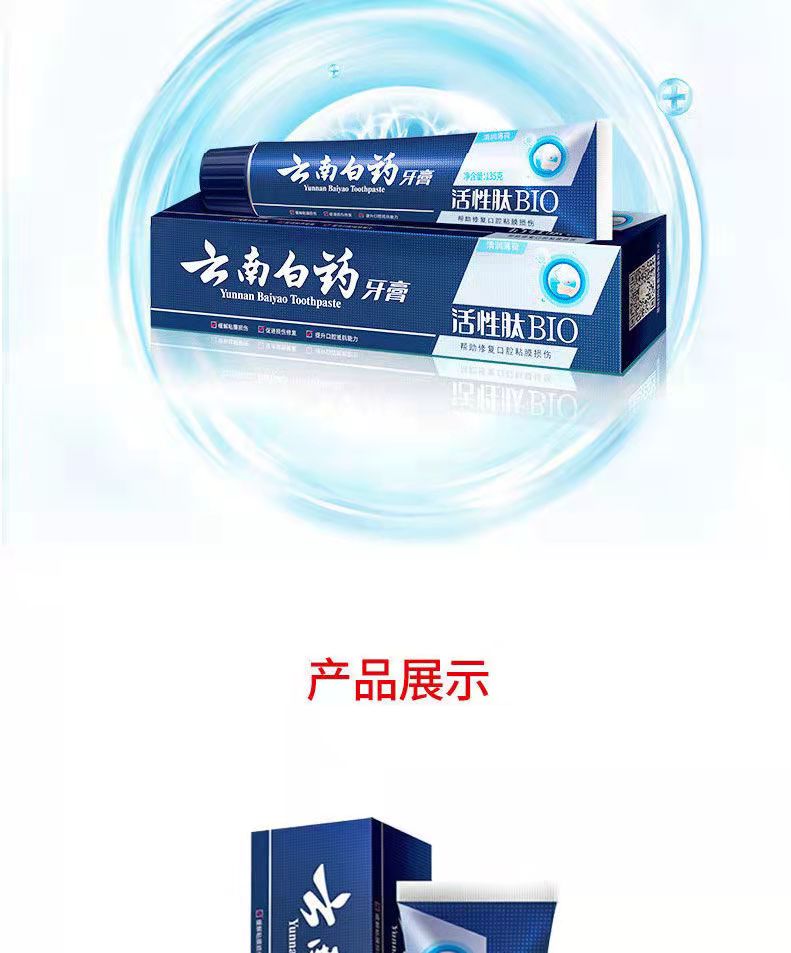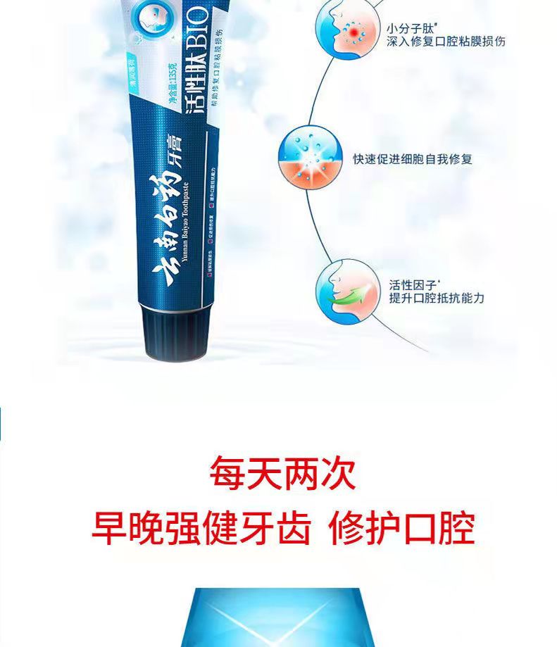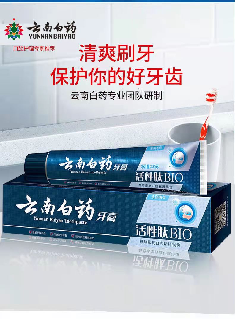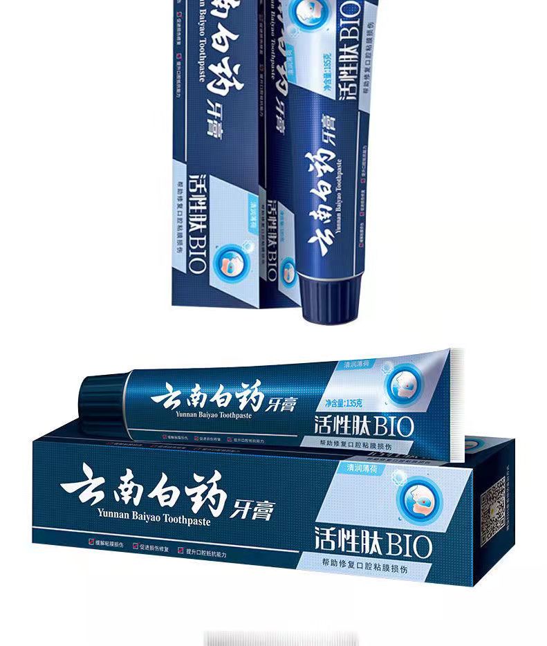 云南白药牙膏活性肽BIO 135g盒装 修复口腔粘膜损伤 解决口腔问题