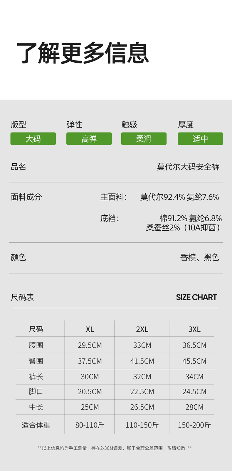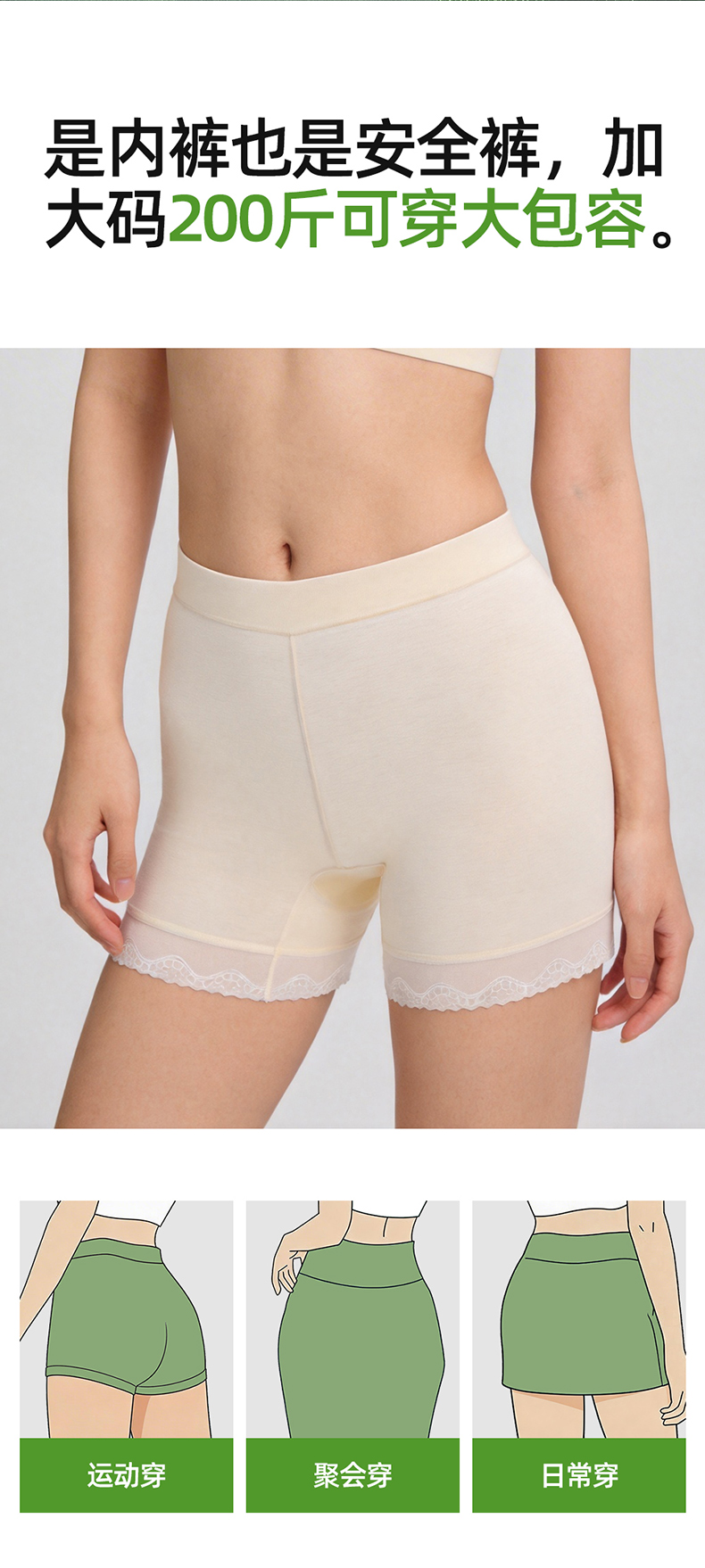 【礼品专用】新款莫代尔大码安全内裤女胖mm200可穿桑蚕丝裆二合一防走光打底裤#549