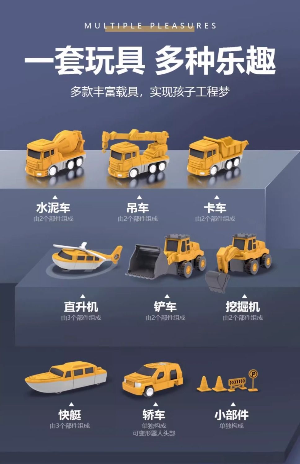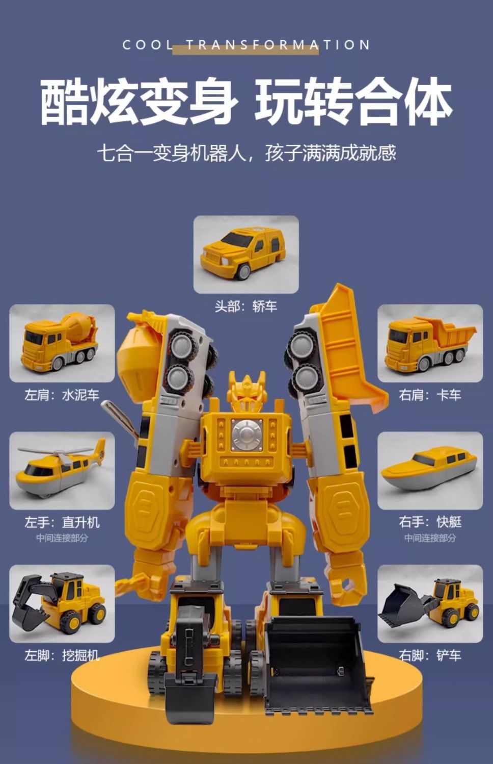 【百变磁力工程车拼装机器人】儿童百变磁力 工程车 变形拼装 机器人 磁吸积木块 玩具套装男孩