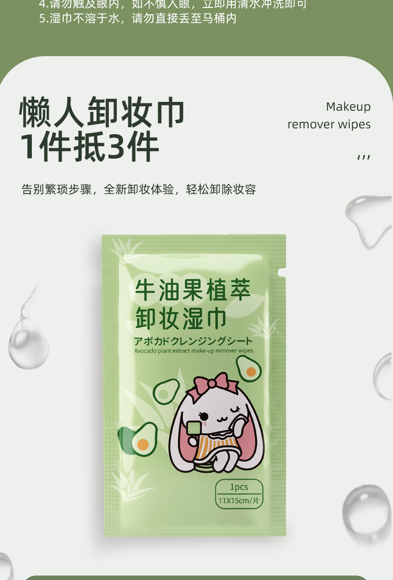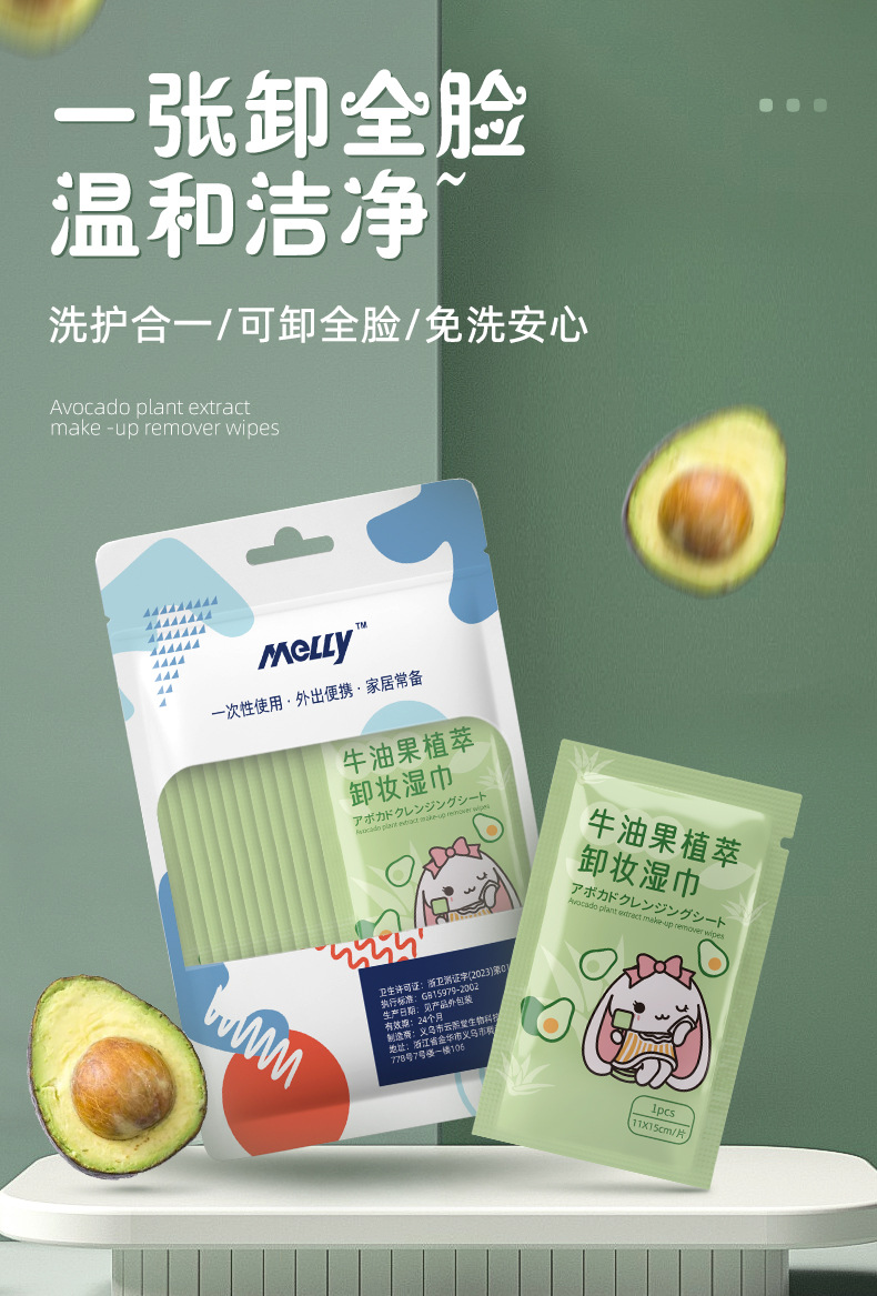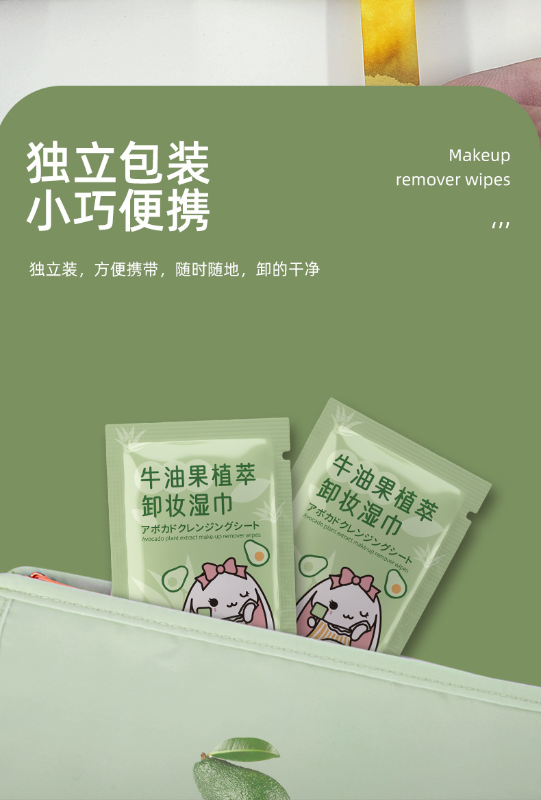 「19.9到手3袋」牛油果植物精华卸妆湿巾纸 清洁懒人洁面卸彩妆眼唇妆一次性湿纸巾