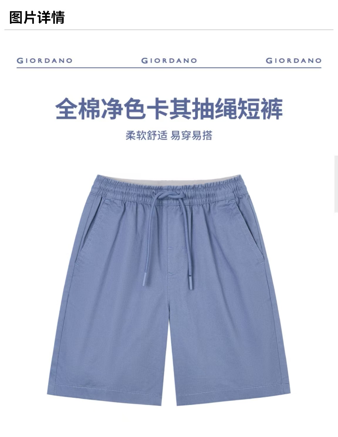 佐丹奴童装26年新款全棉净色卡其抽绳短裤03106225