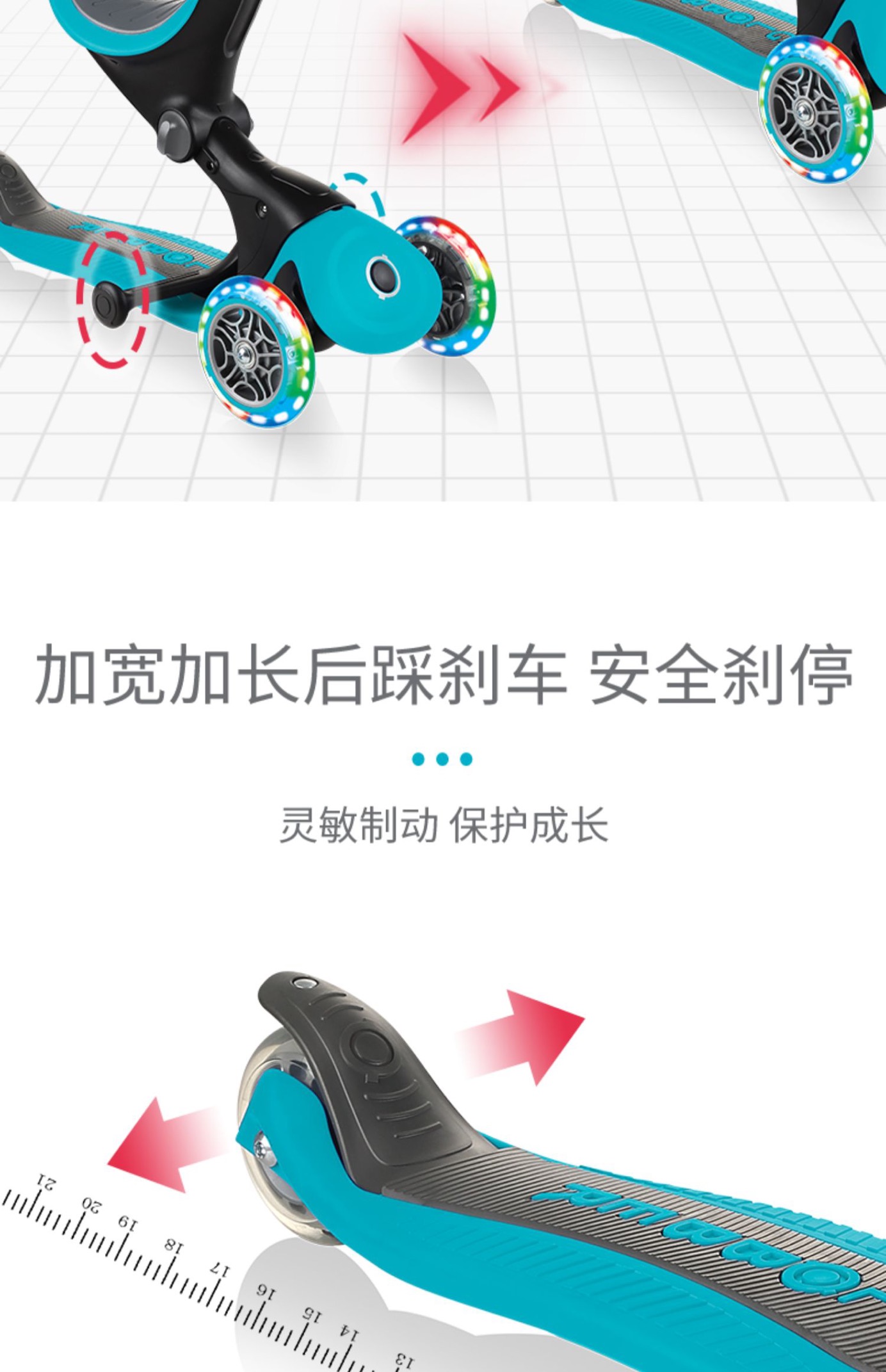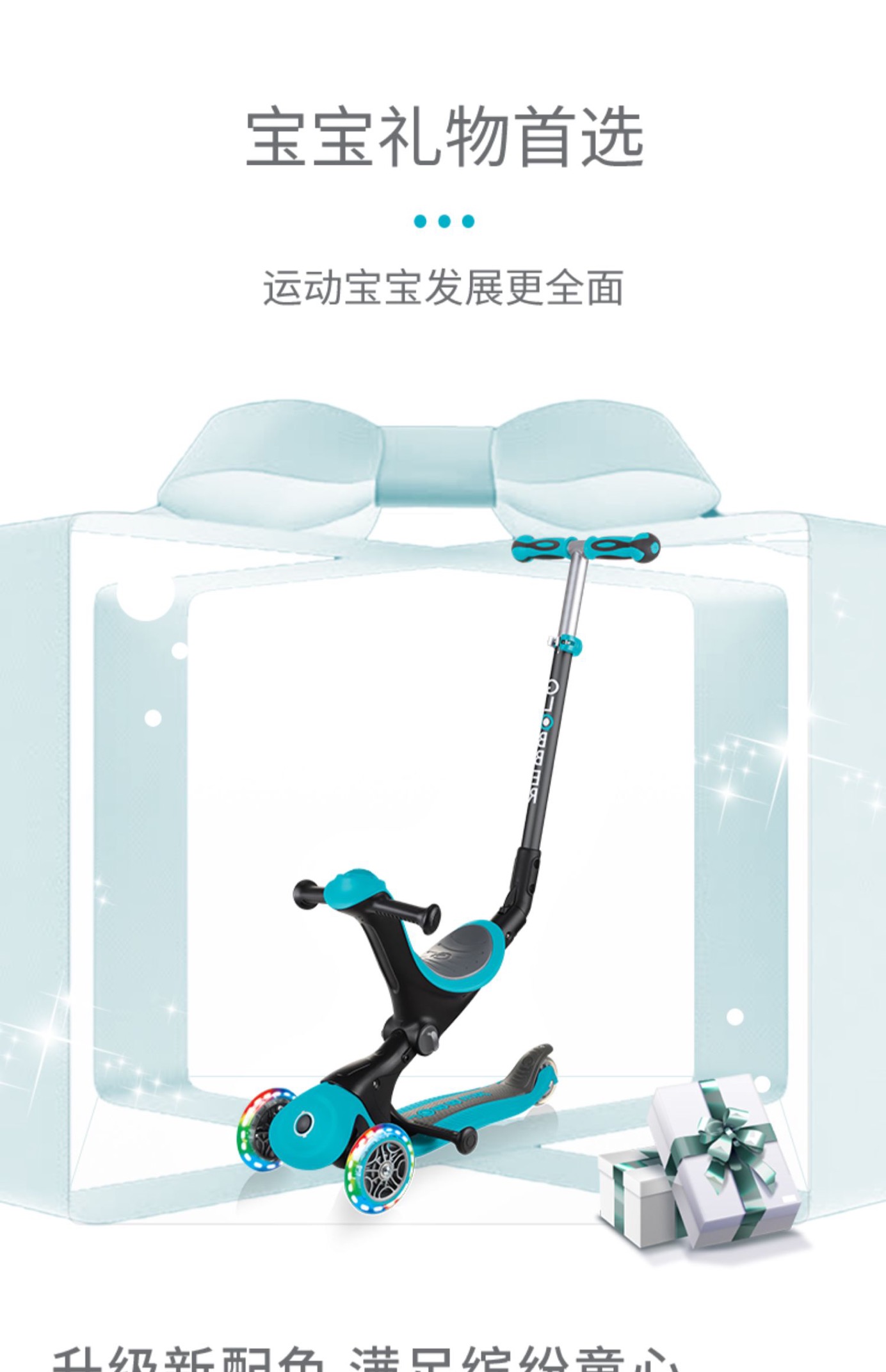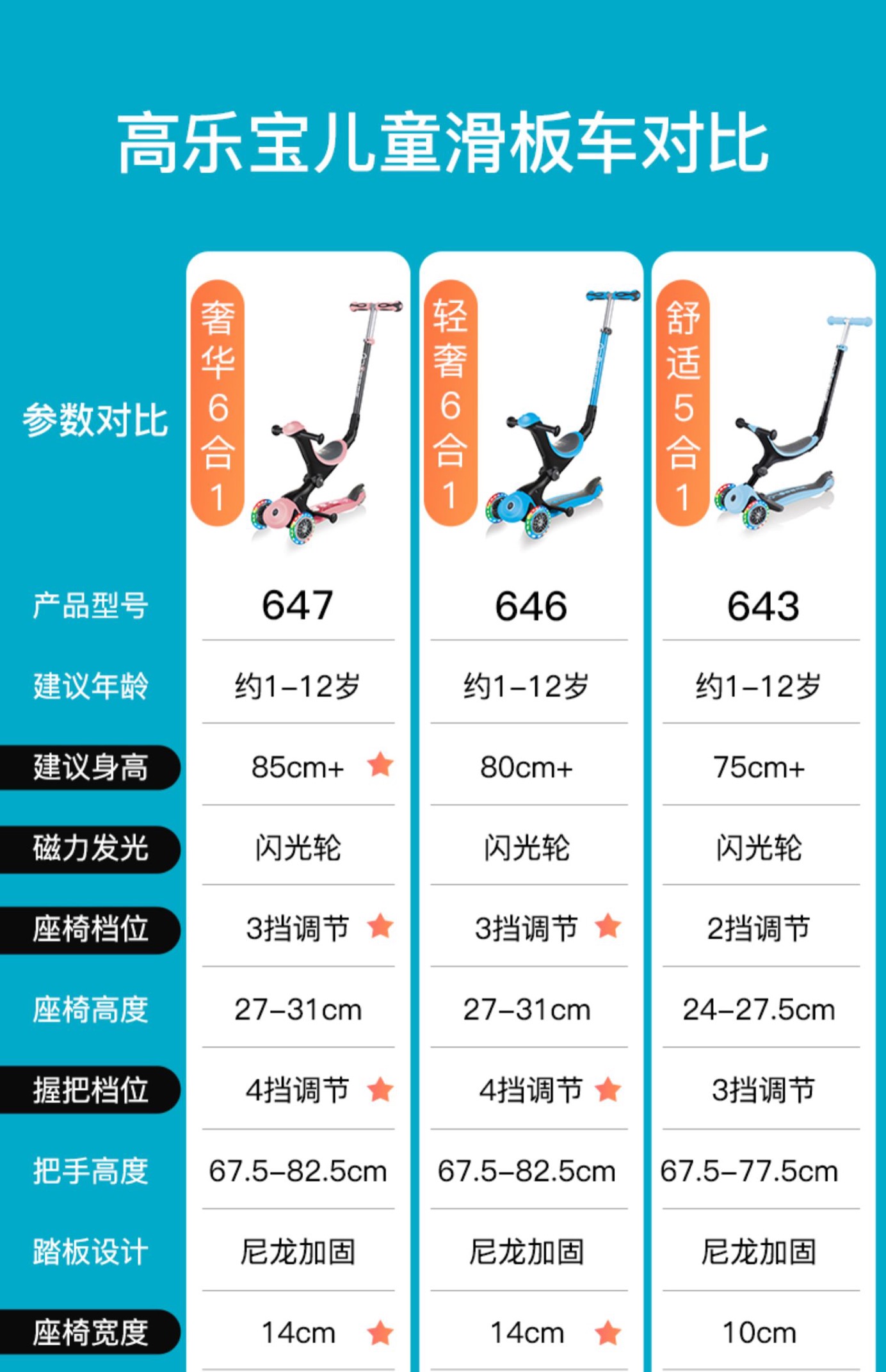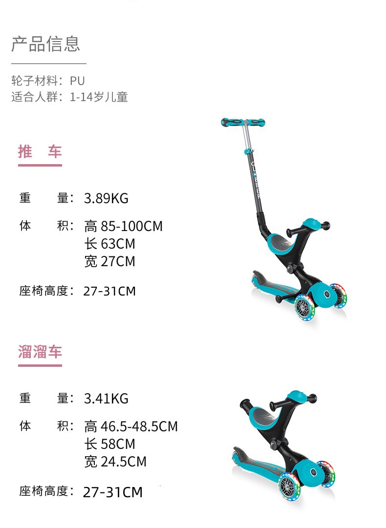 法国globber六合一高乐宝滑板车【可折叠】绚彩款647(15个月-9岁+)炫丽系列