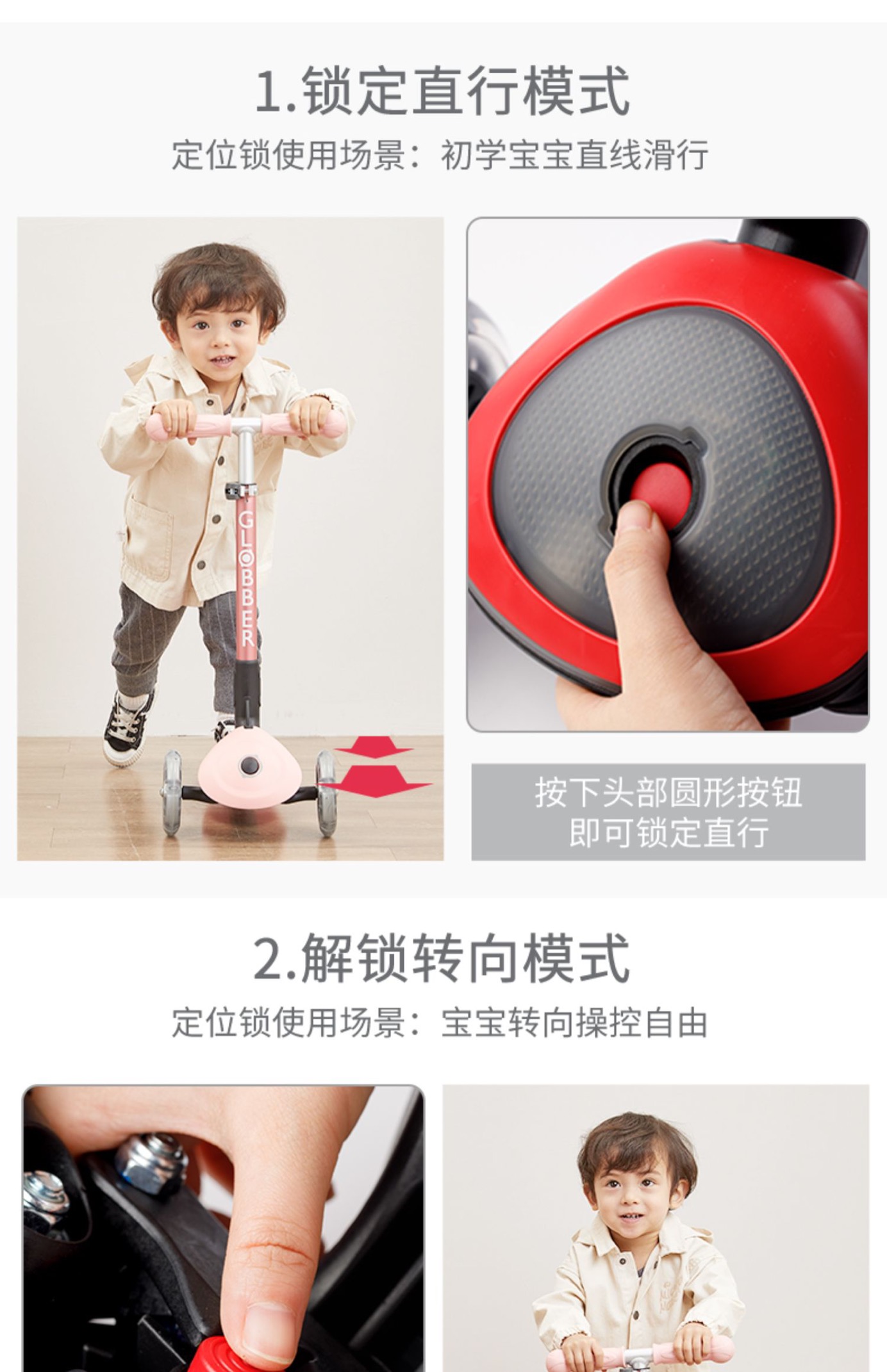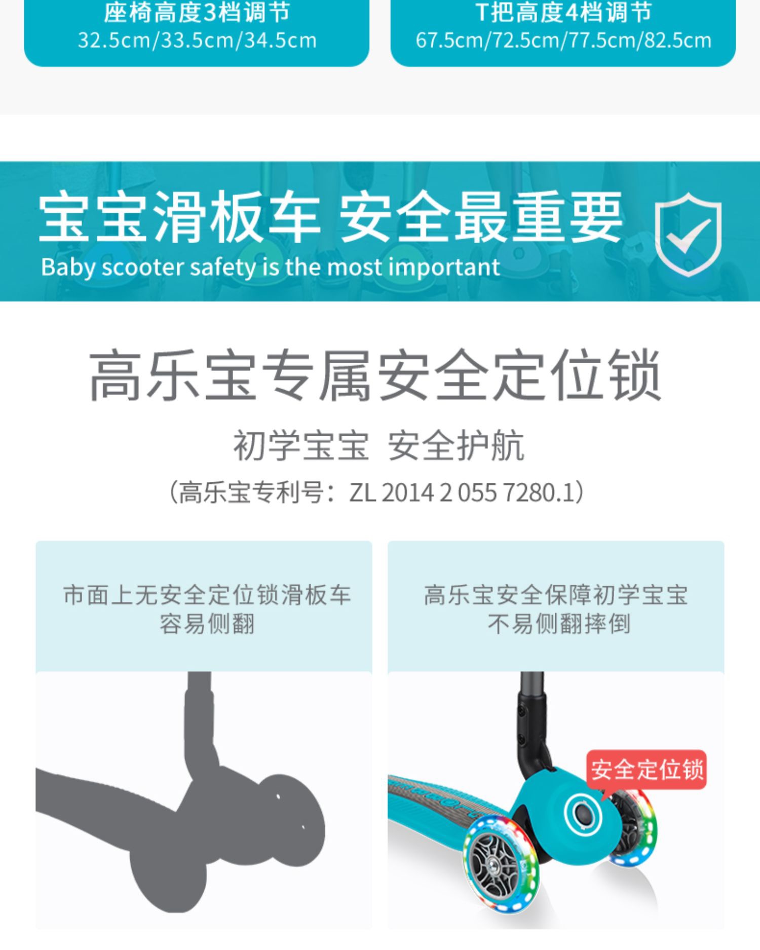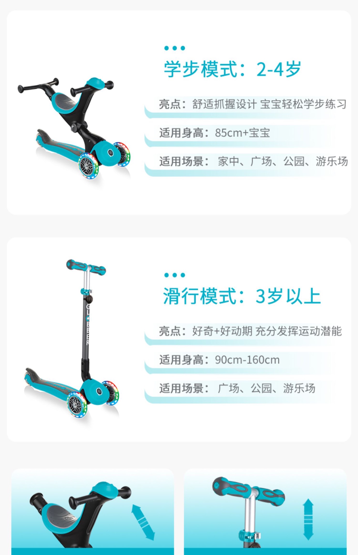 法国globber六合一高乐宝滑板车【可折叠】绚彩款647(15个月-9岁+)炫丽系列
