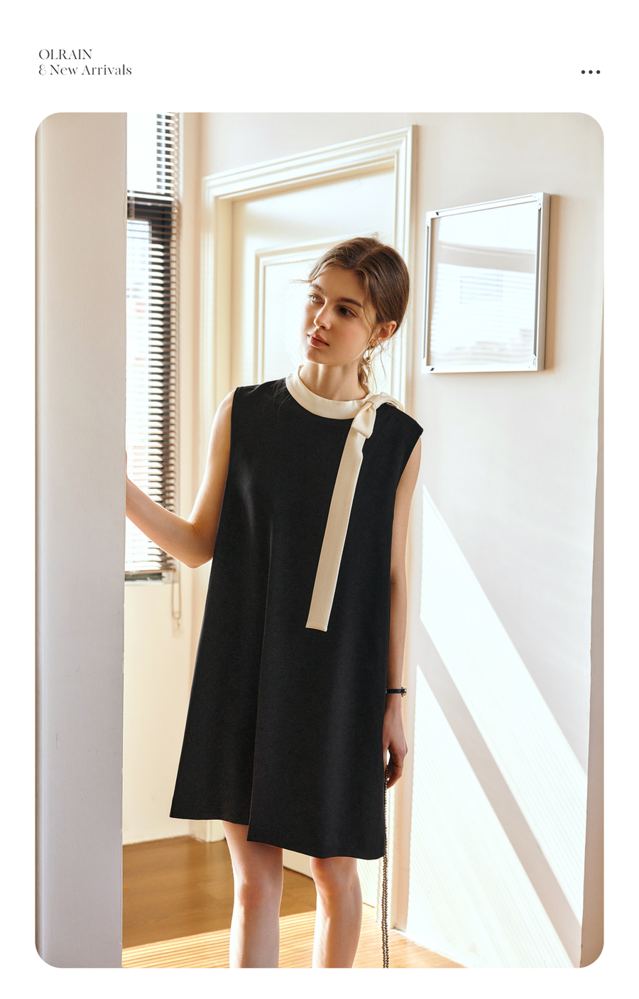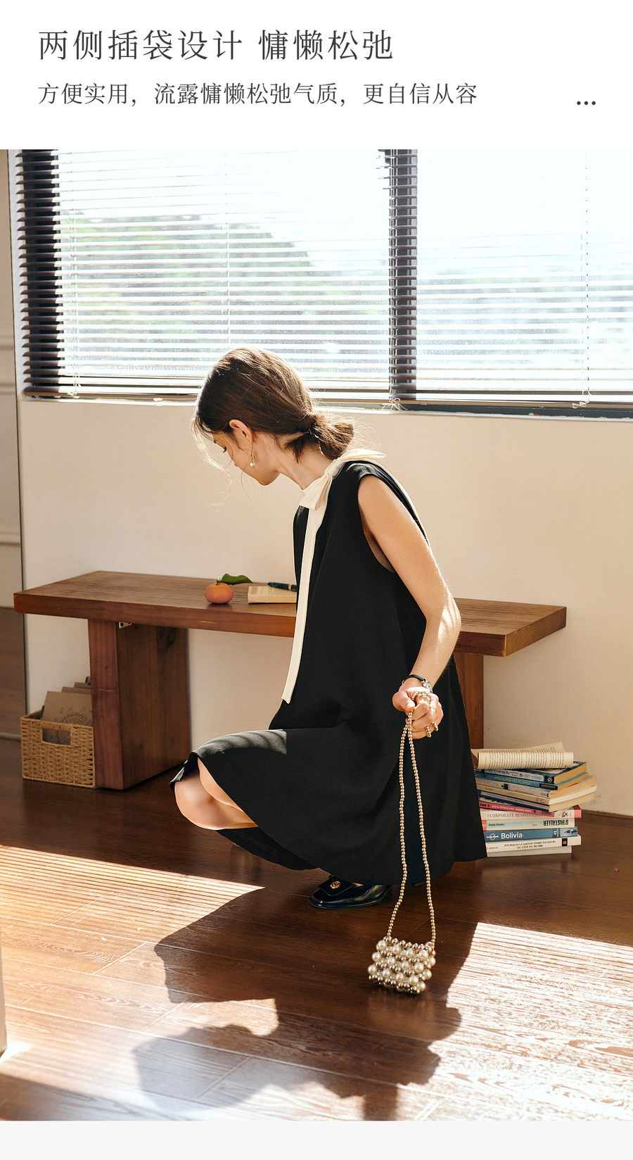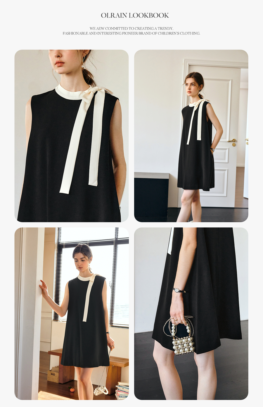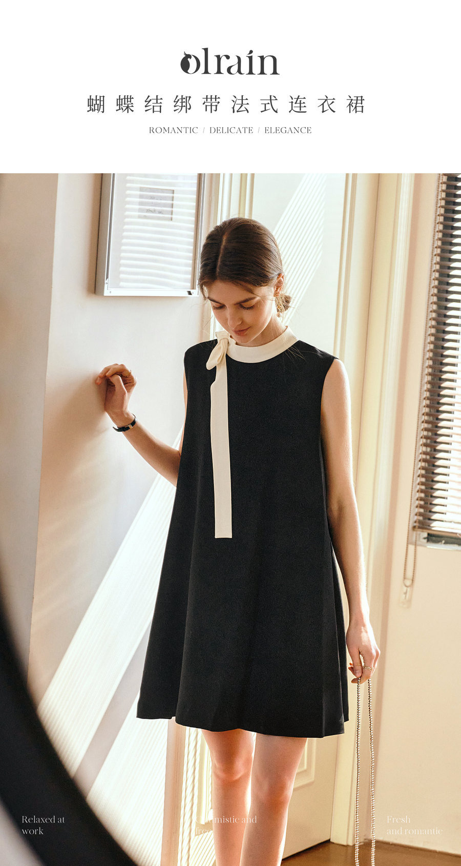 欧芮儿2025夏季新款气质拼接绑带蝴蝶结设计法式宽松无袖连衣裙女