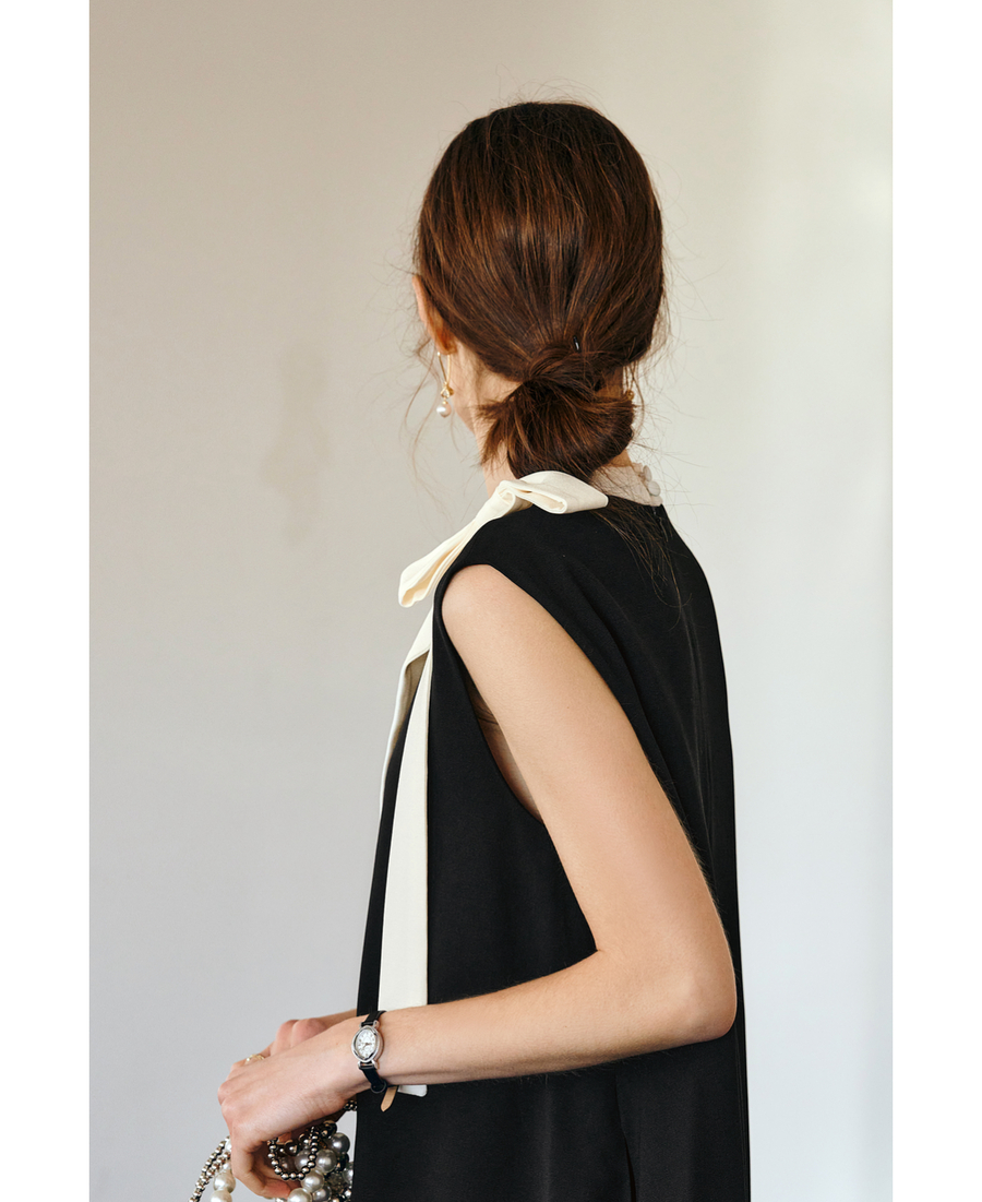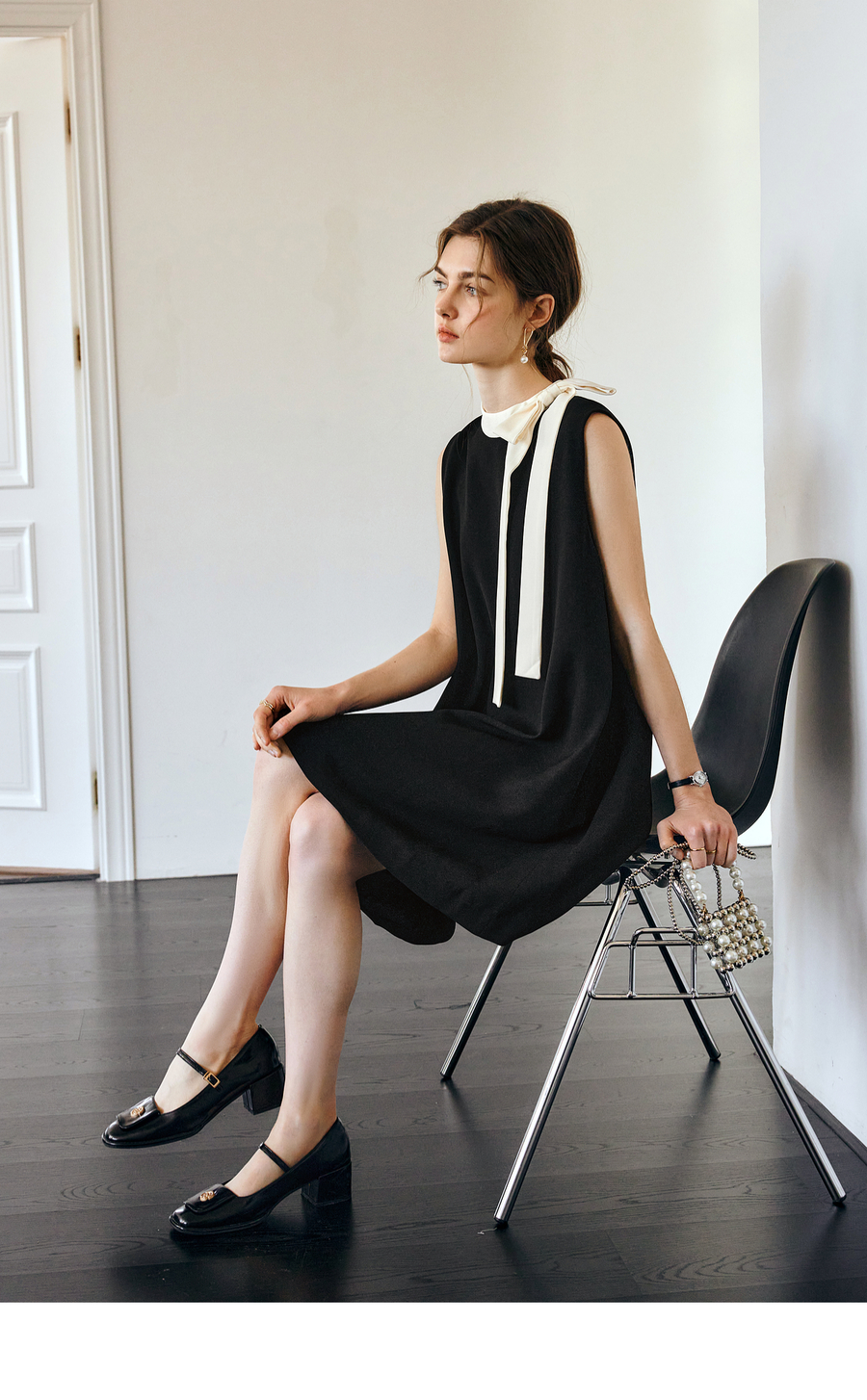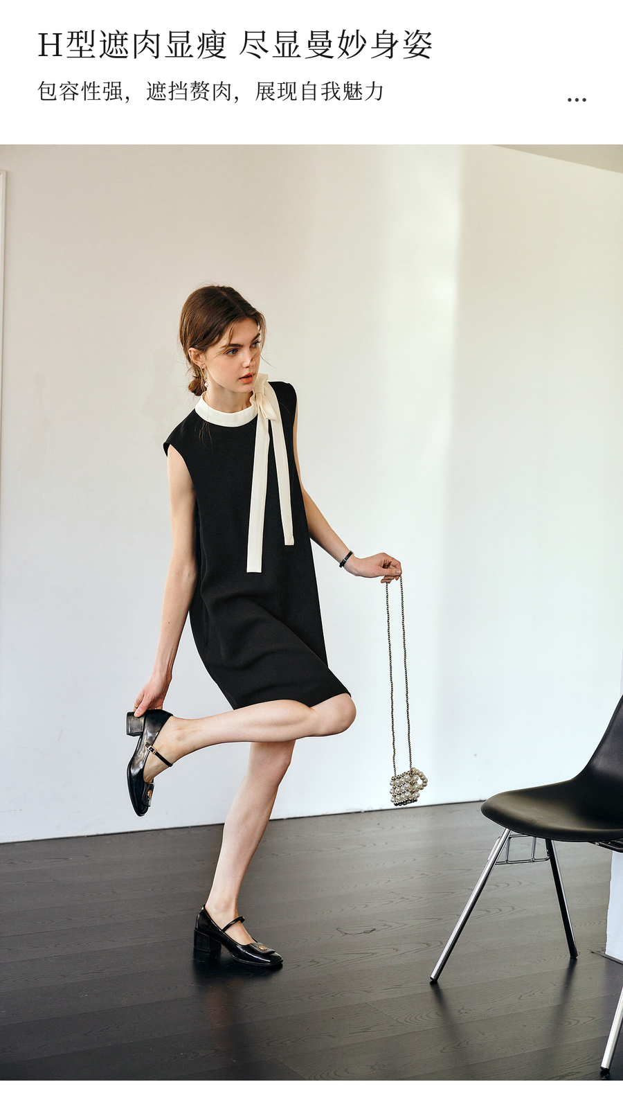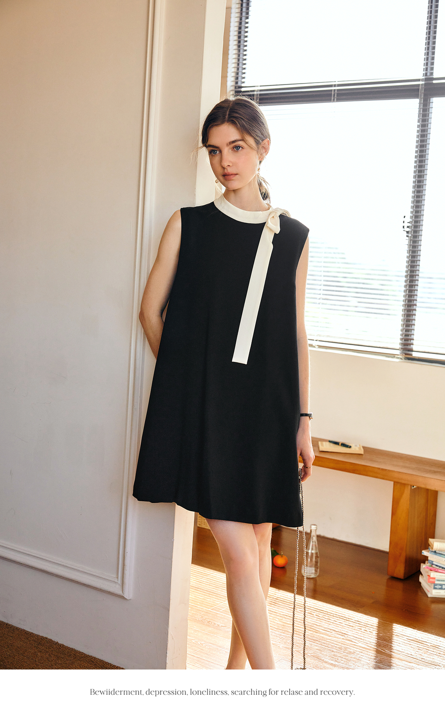 欧芮儿2025夏季新款气质拼接绑带蝴蝶结设计法式宽松无袖连衣裙女