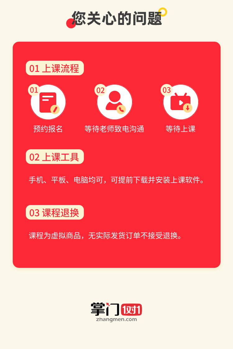 新品上线【掌门一对一】,孩子的专属老师,精选本地名师,更懂当地考试大纲,在线直播,时间自选,注意:下单后接听工作人员电话,收验证码开课