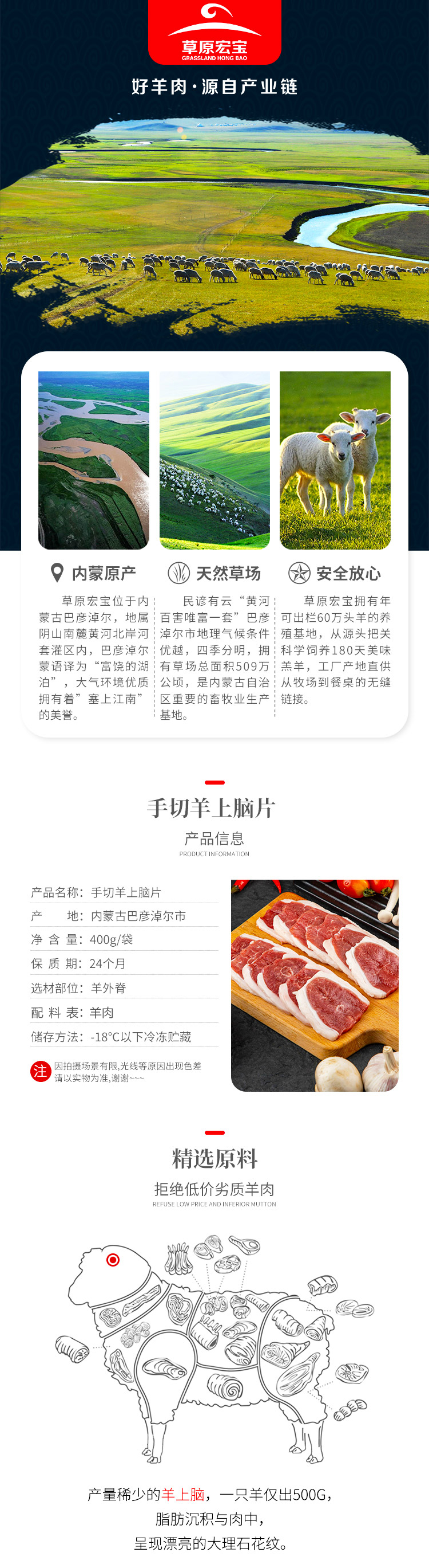 草原宏宝 国产 内蒙古手切羊上脑片 净重400g/袋 冷冻 烧烤火锅食材 地理标志认证