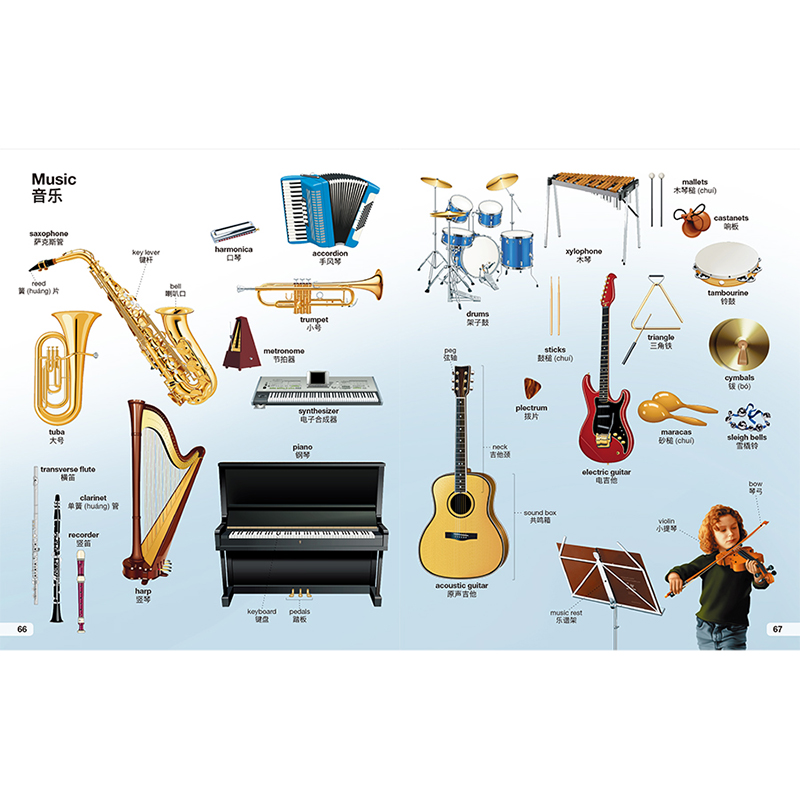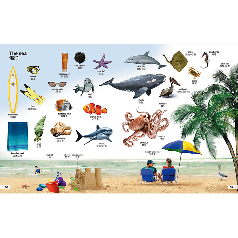 · 百科词汇,包罗万象:涵盖天文、地理、生物、音乐、交通等36个主题单元,科学系统地展现1700余双语百科词汇。从生活入手,观照世界万象,符合启蒙阶段儿童心理及认知需求。