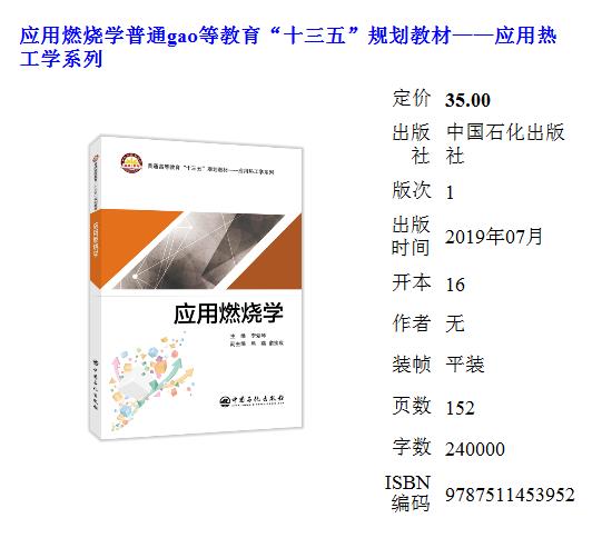 【官方旗舰店】应用燃烧学普通高等教育十三五规划教材应用热工学系列中国石化出版社