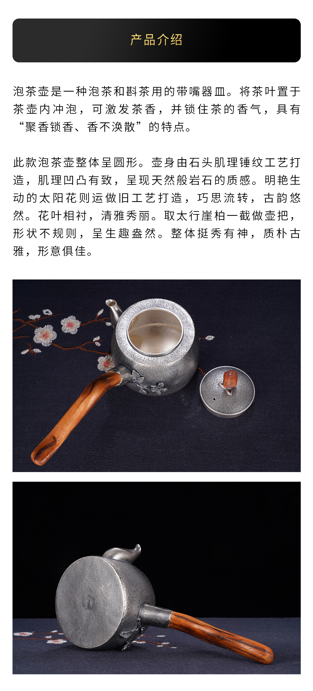 子佩集S999银+崖柏【暖阳花韵】小茶壶摆件【TG0011】2403