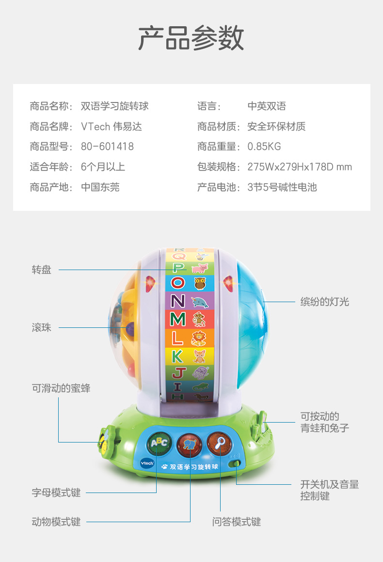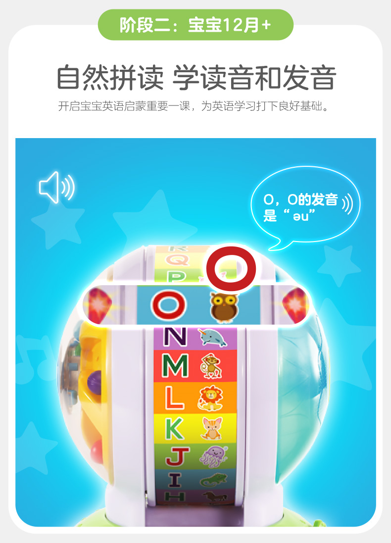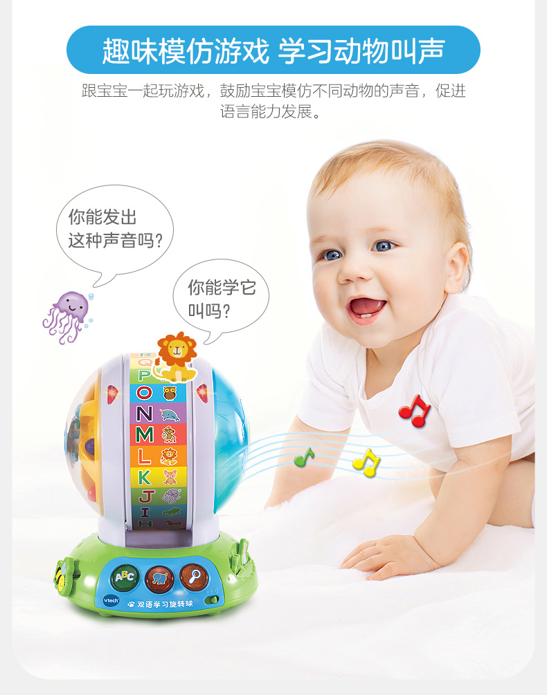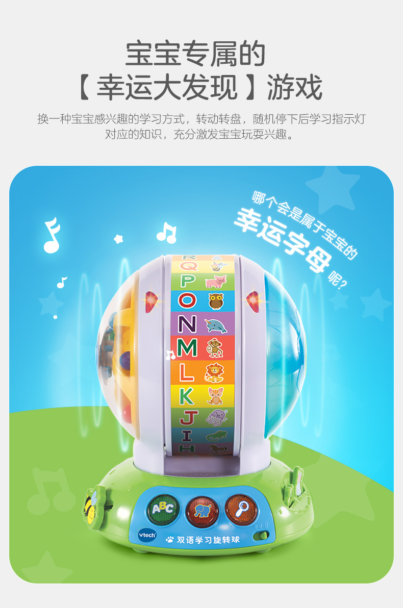 伟易达双语学习旋转球宝宝英语字母动物拼读训练有声玩具早教机