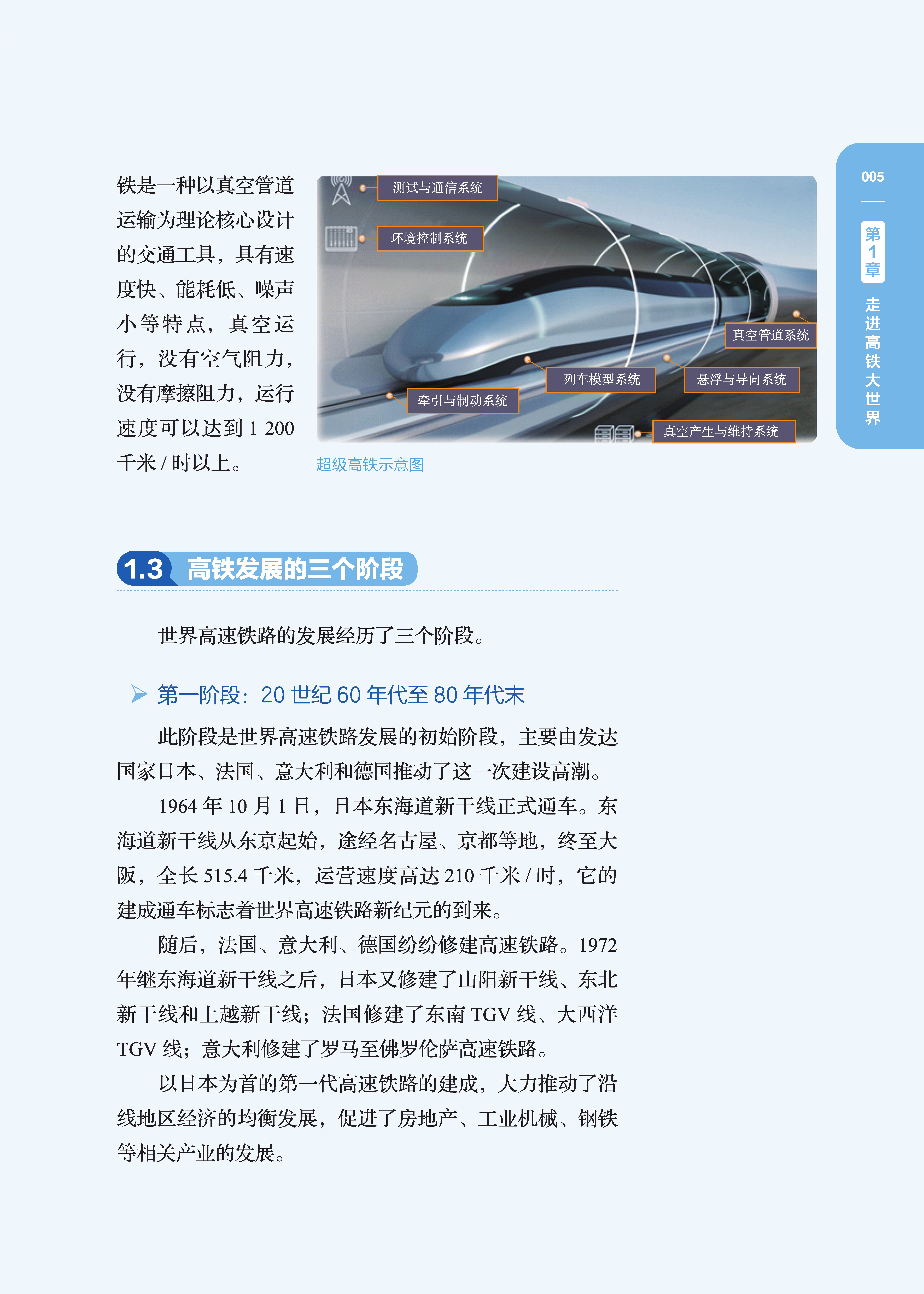 本科普读物从广义高铁概念出发,基于“轮轨高铁、磁浮高铁、超级高铁”等三个方面,科普高铁的基本知识、概念术语和发展历程等,并通过一系列有趣的图和表,采用通俗易懂的语言,详细解读高铁发展中人们关注的热点问题和疑难困惑。