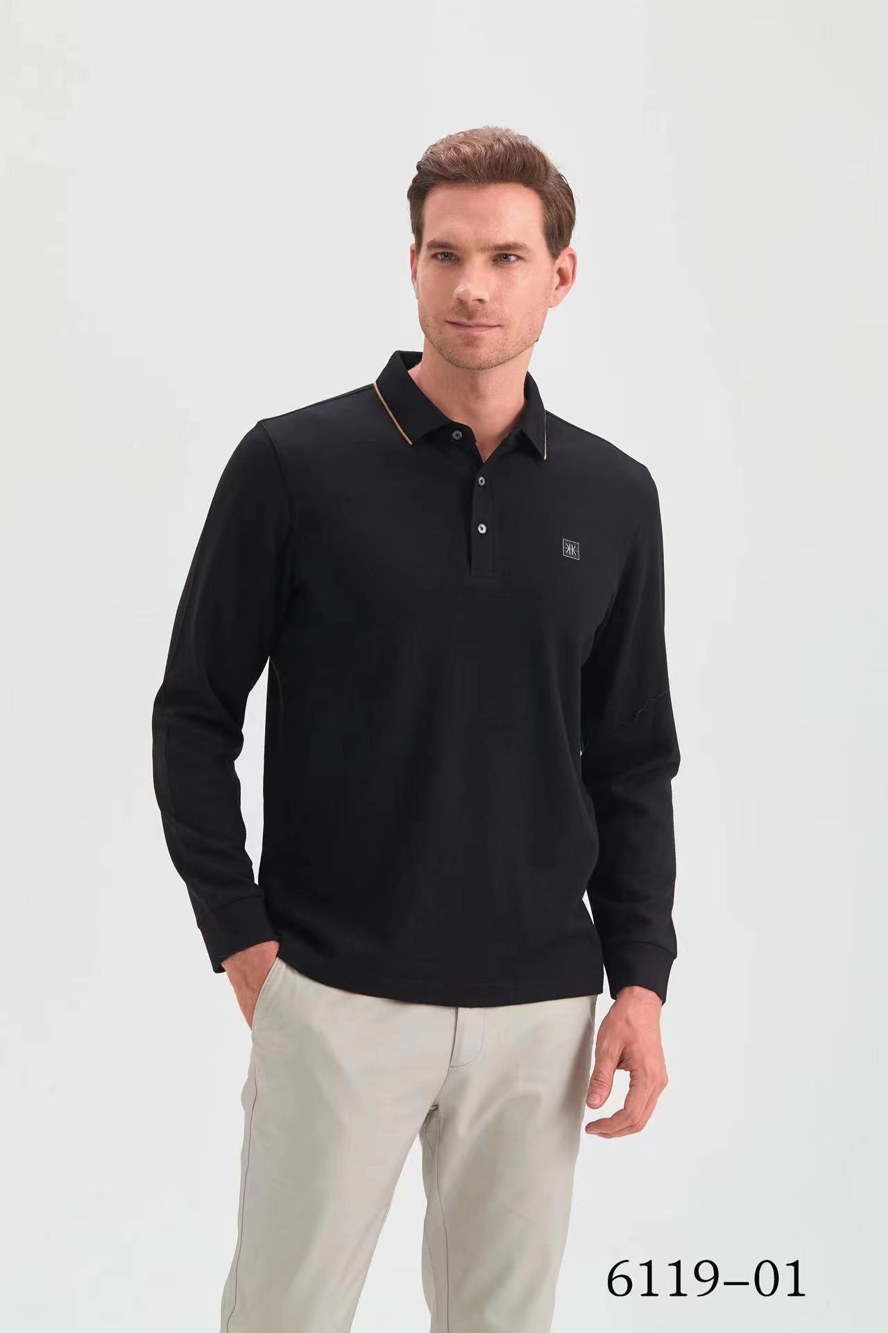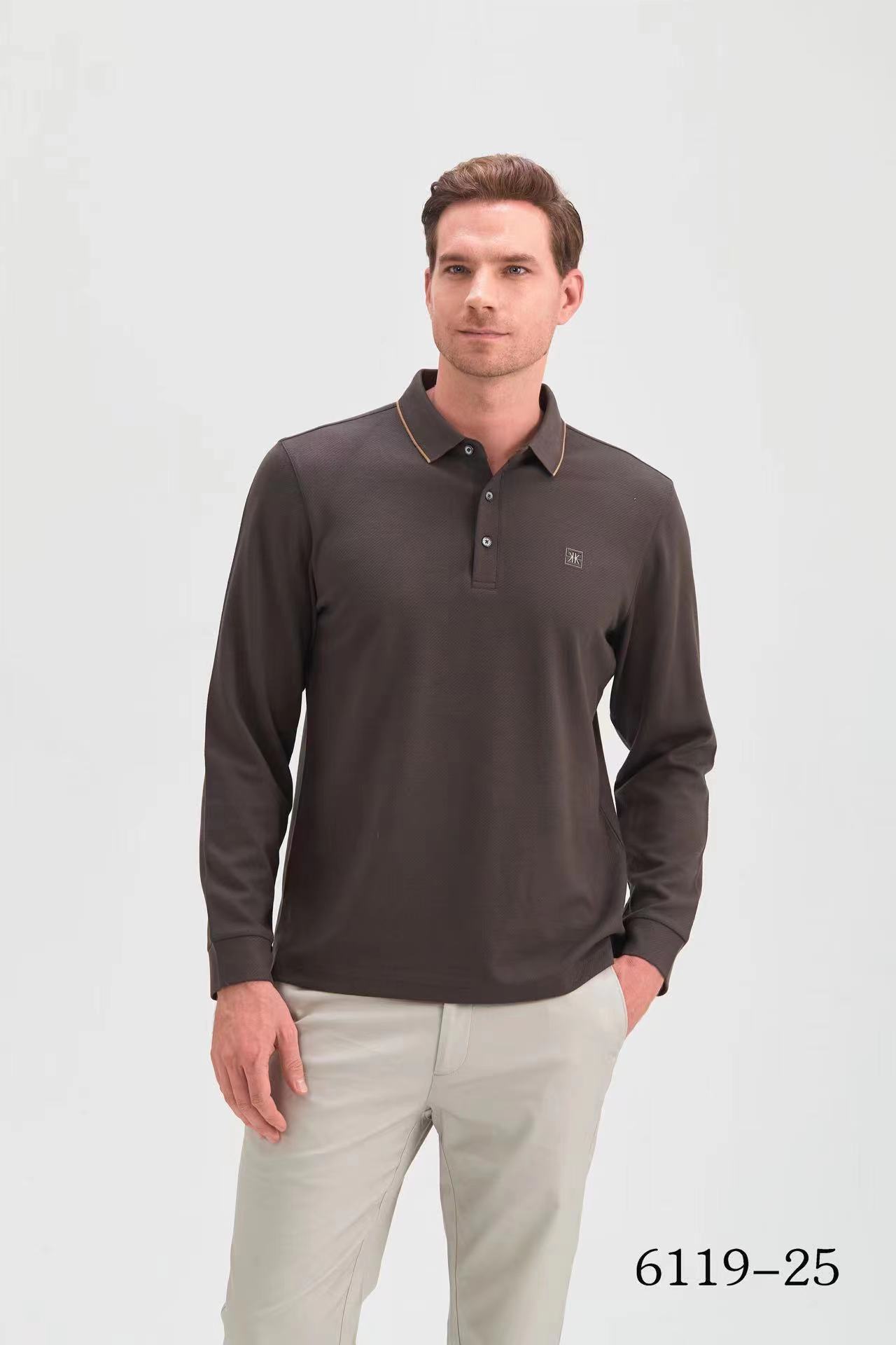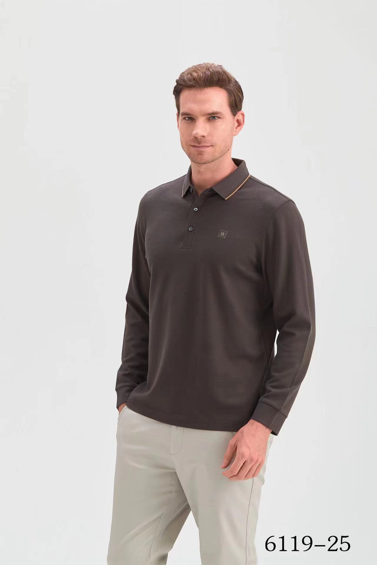 6119# 男装男士长袖POLO衫2023秋季新品磨毛内里保暖商务T恤 咖色、黑色、绿 M~3xL