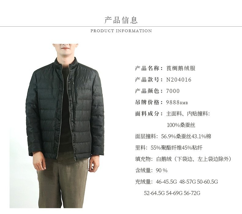 TANGY Collection/天意精品秋冬款暗香系列男士莨绸羽绒(鹅绒)服