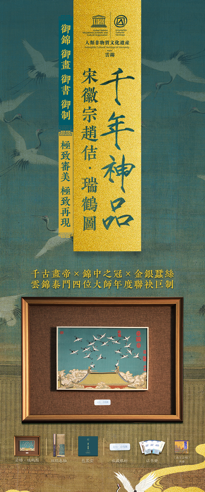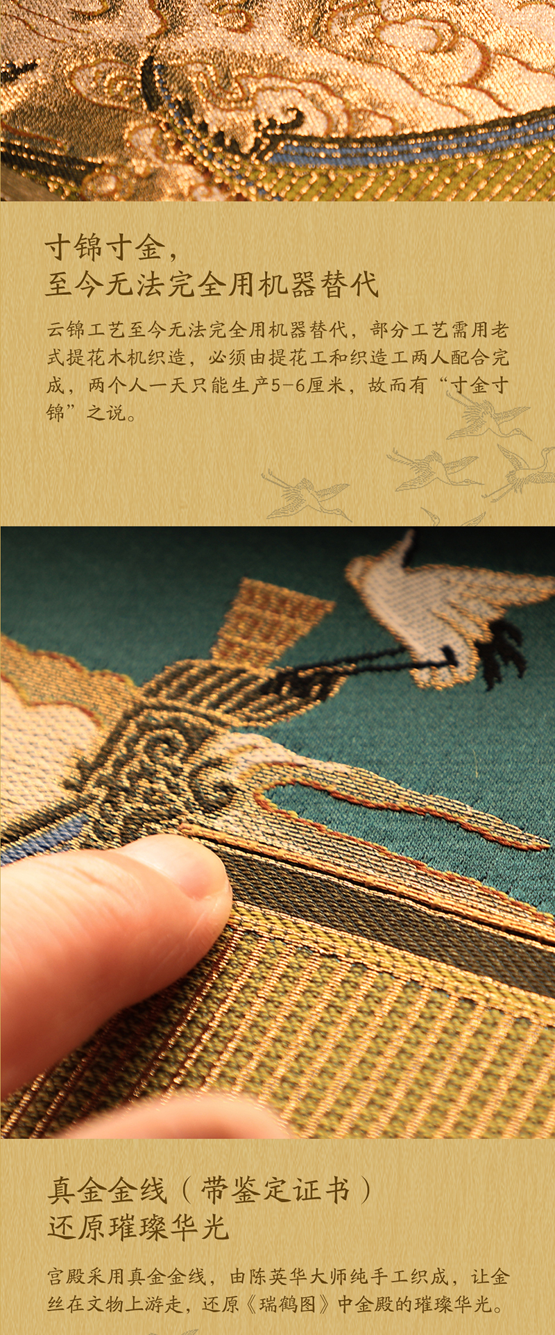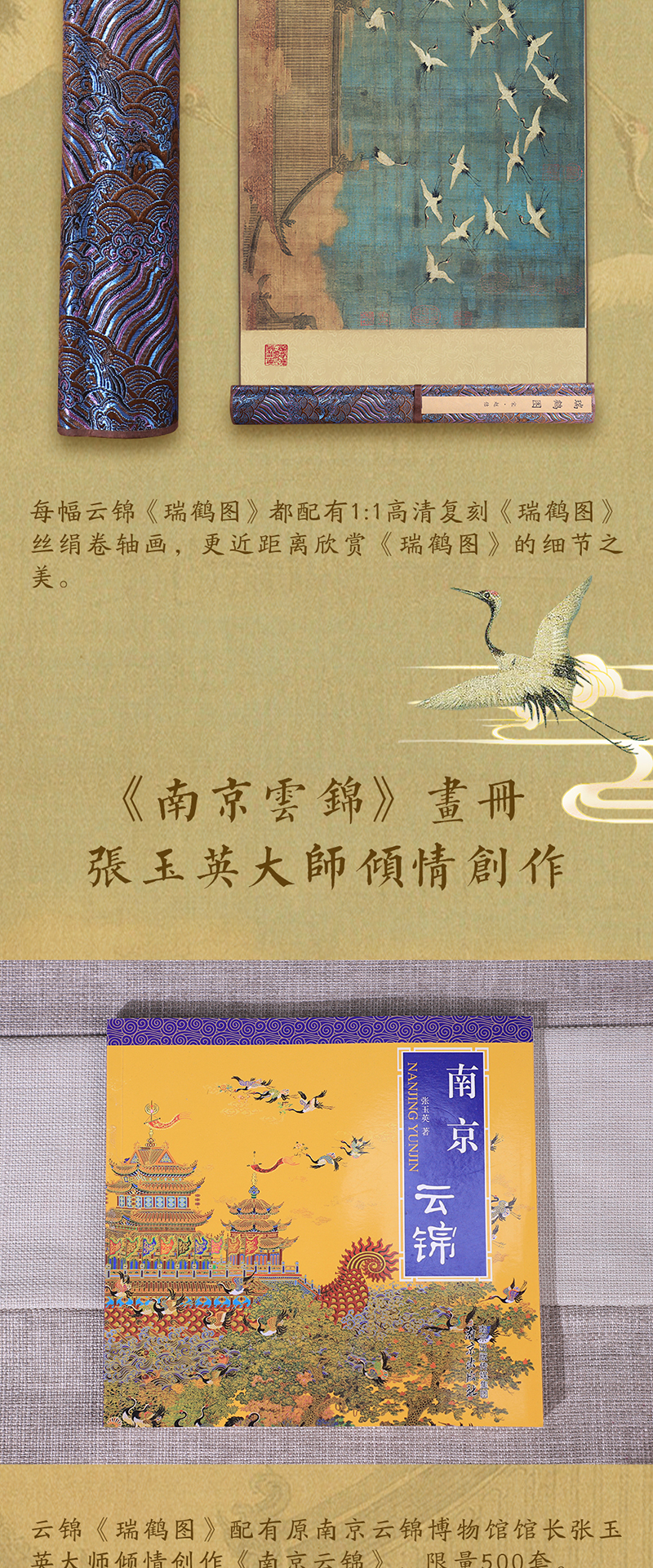 非遗云锦《赵佶·瑞鹤图》,赠:1:1超清丝绢版《瑞鹤图》1幅 +《南京云锦》图书一本+扬州制笔大师余其春手工毛笔套装1套