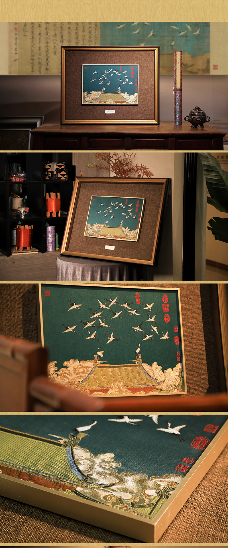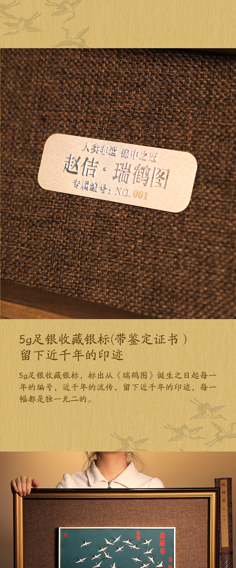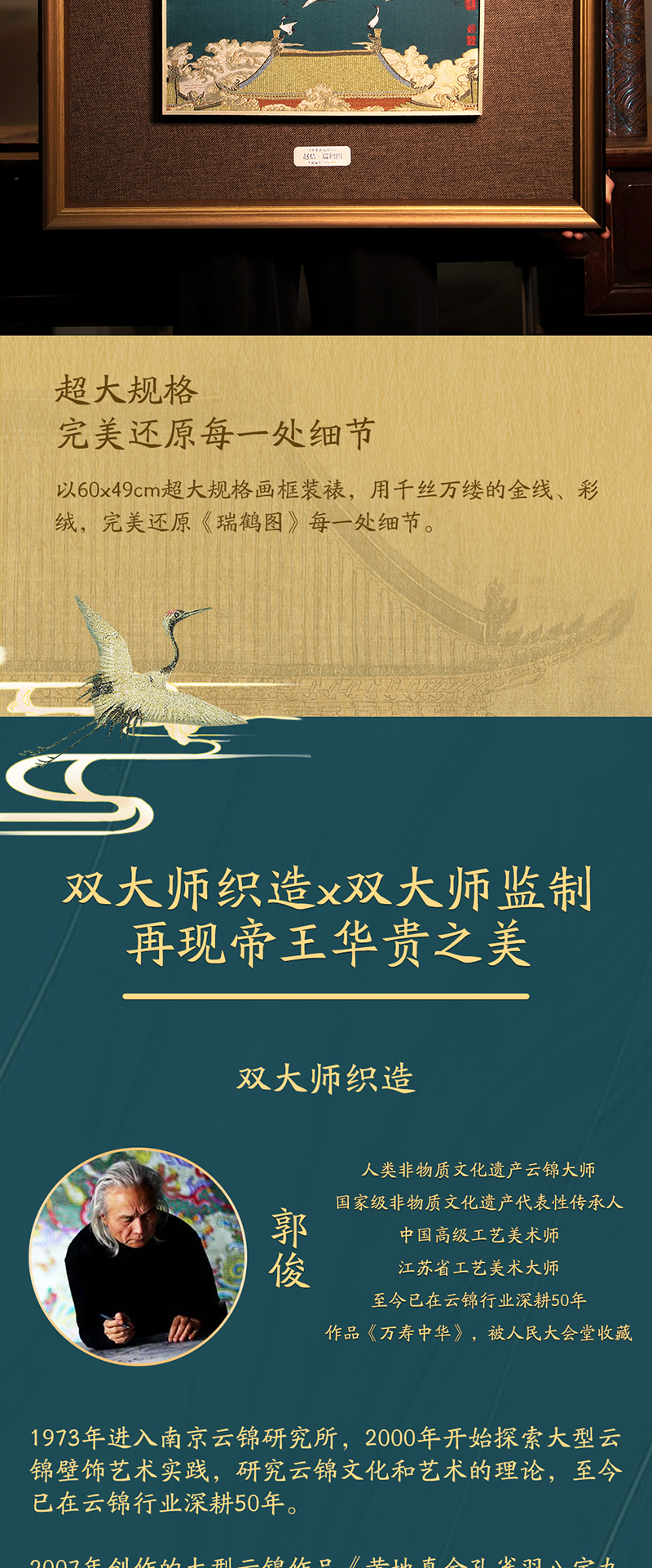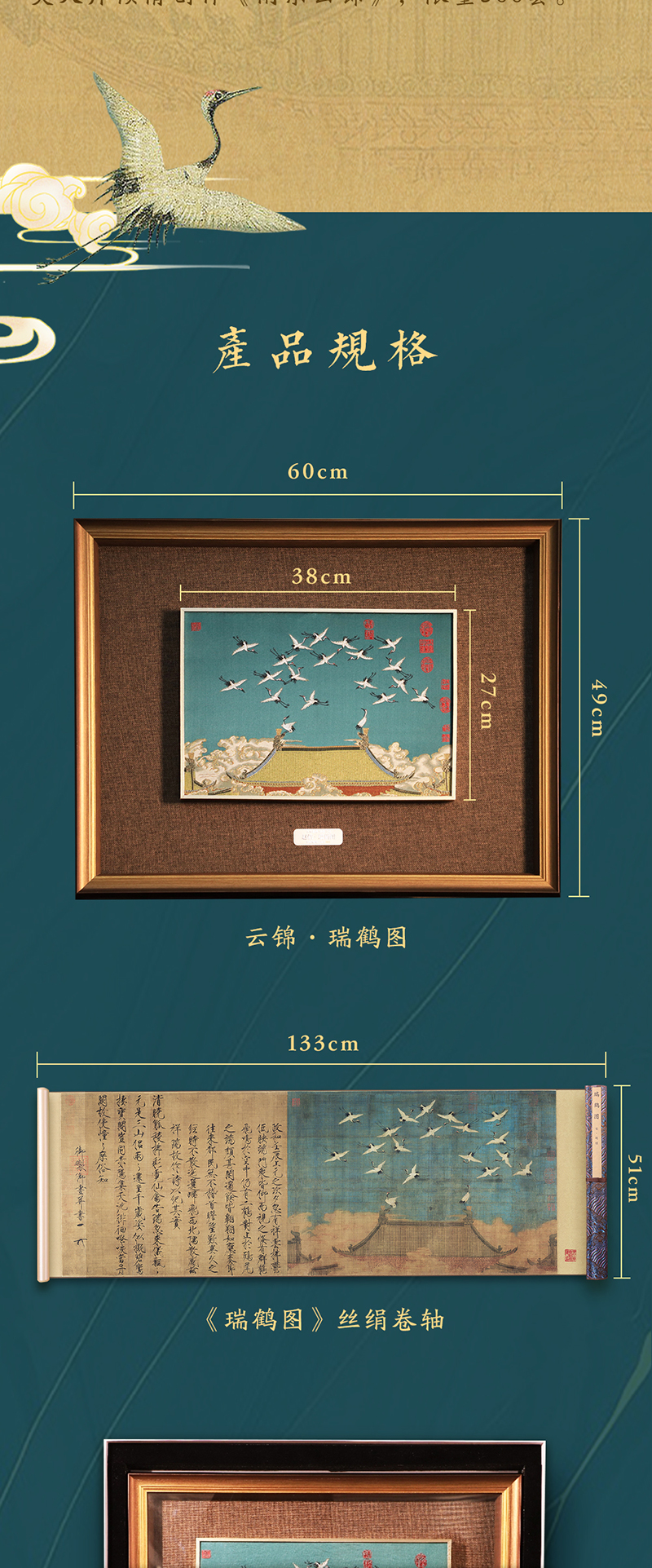 非遗云锦《赵佶·瑞鹤图》,赠:1:1超清丝绢版《瑞鹤图》1幅 +《南京云锦》图书一本+扬州制笔大师余其春手工毛笔套装1套
