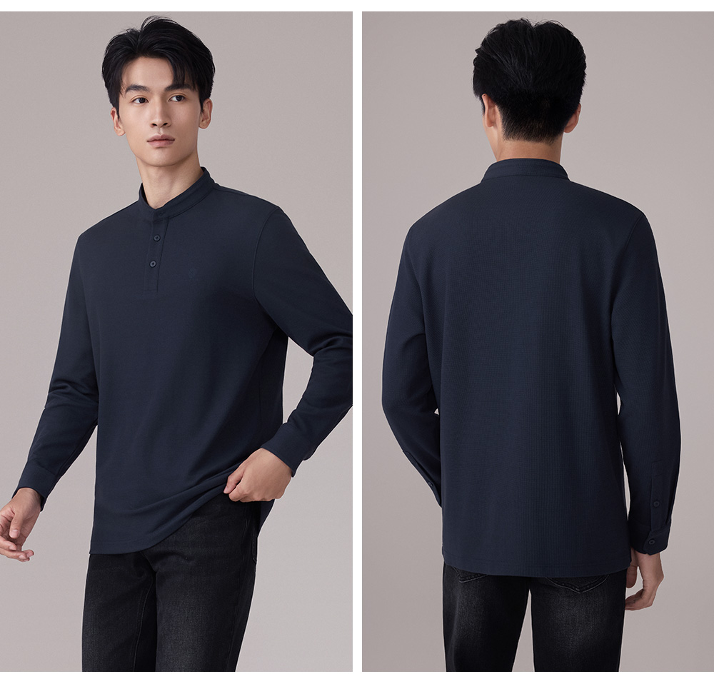 MD名盾桑蚕丝长袖Polo衫男士秋冬季打底休闲商务爸爸装翻领t恤衫