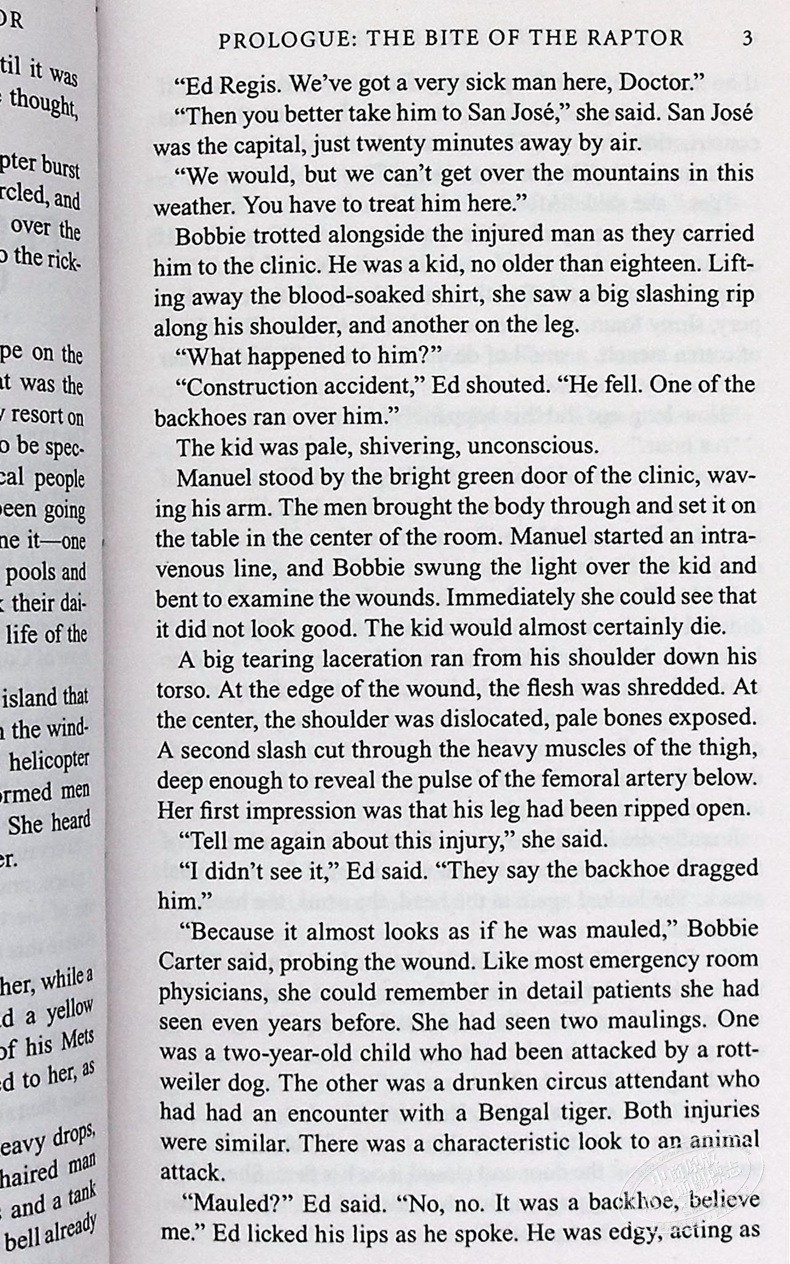 就像这个优秀的小说家一样,克莱顿知道怎样让一个故事鲜活起来,刺激起来。他的叙事有种难以抵御的力量,让你迅速被情节吸进去,你无法放下这本书,必须一口气读到结尾你才能回过神来。