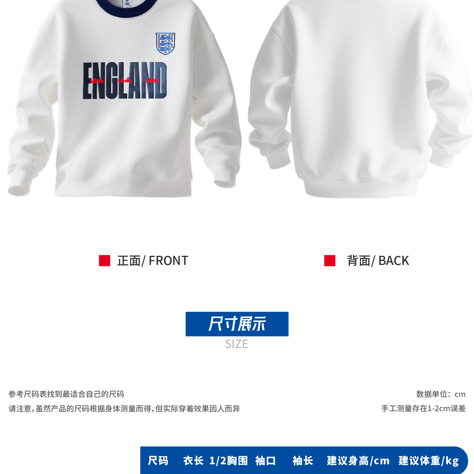 【官方正版】英格兰国 家队 | 秋季新款圆领卫衣蓝白双色男女款