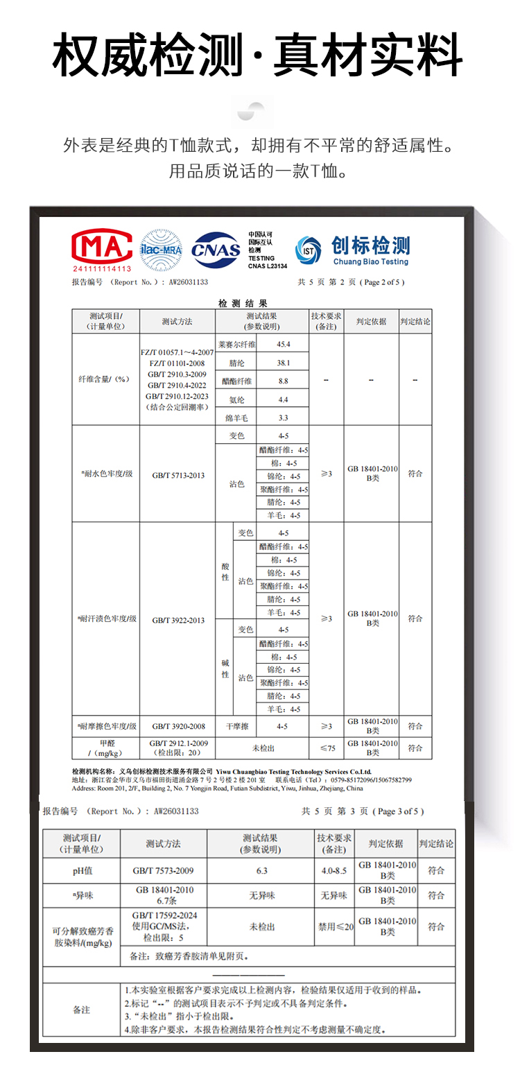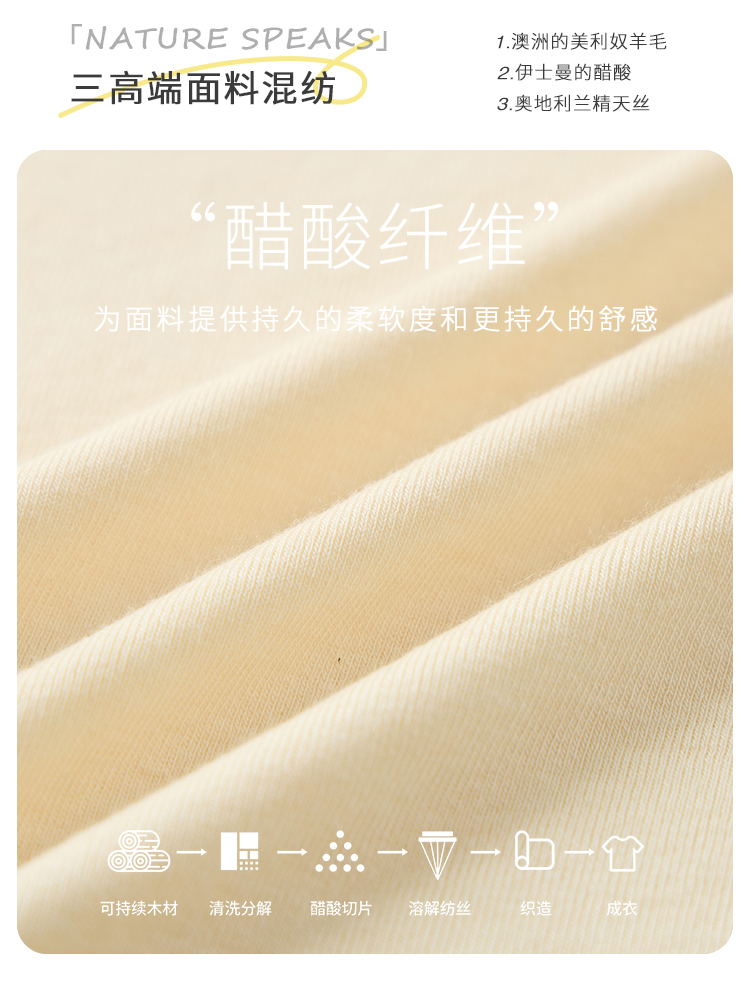 | 材质 | 45.4%莱赛尔;38.1%晴纶;8.8%醋纤;4.4%氨纶;3.3%棉羊毛 |