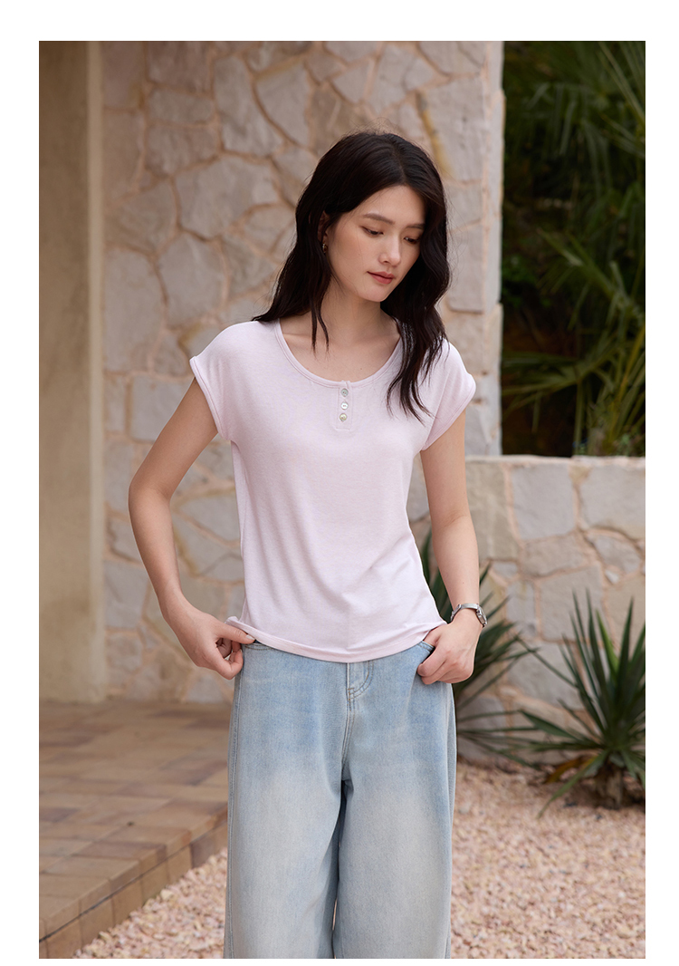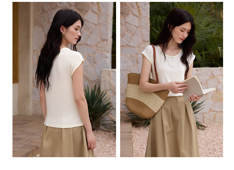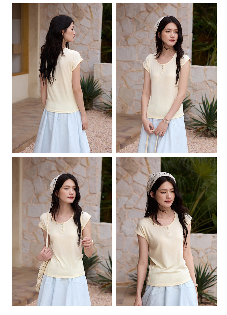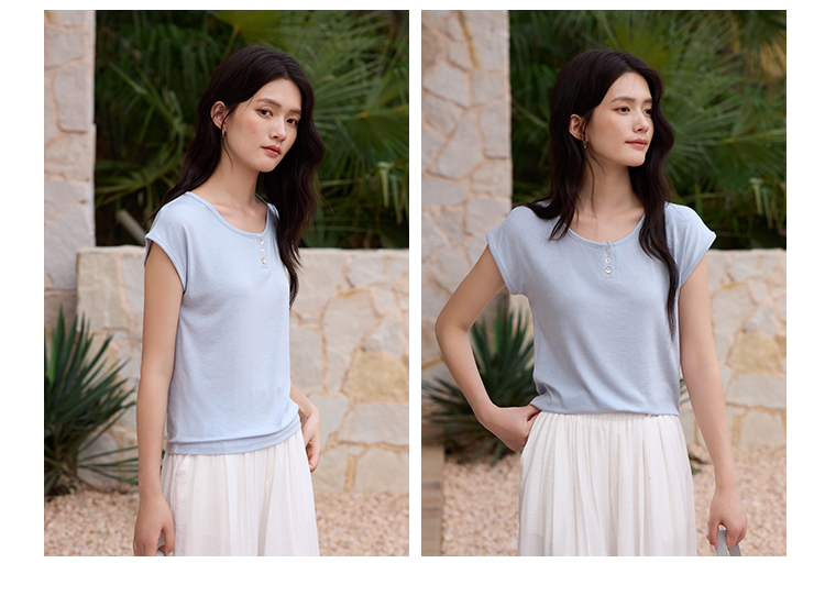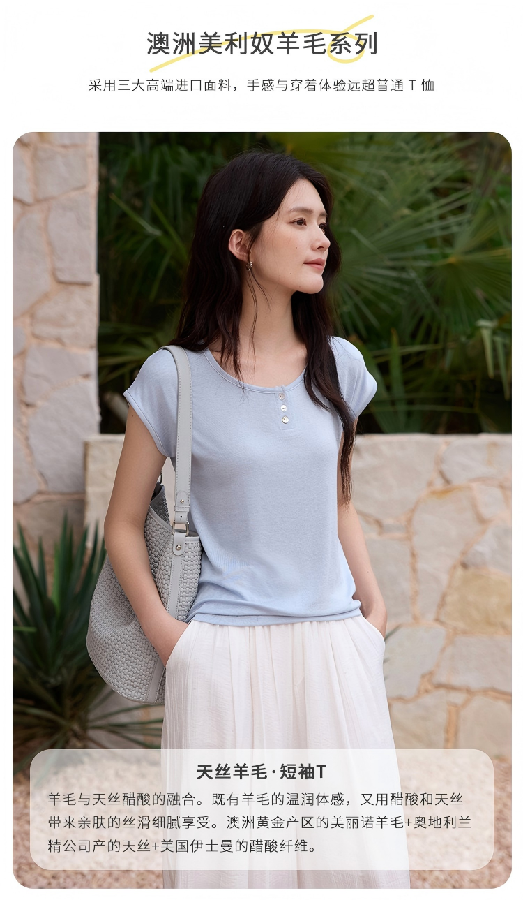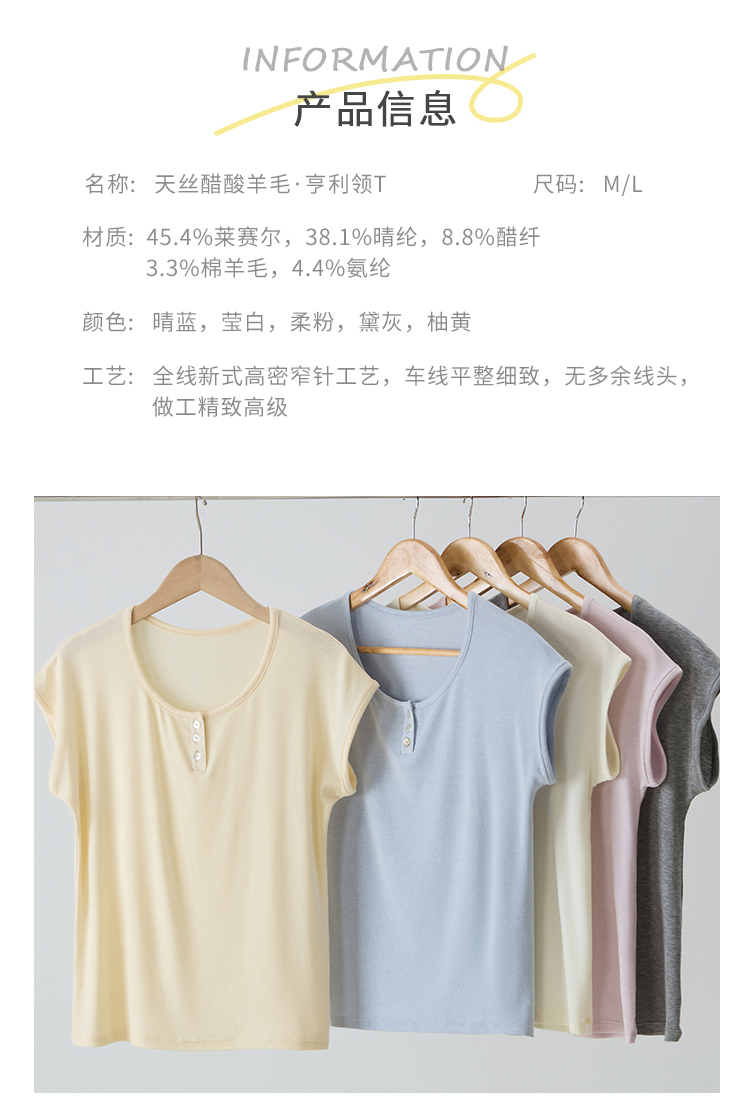 有进口凭证!【特妮娜 天丝醋酸羊毛•亨利领T】面料全部采用进口材质 采用新式高密窄针工艺 车线高密平整 无多余线头 精致做工 简约百搭 上身不粘肤 透气排汗