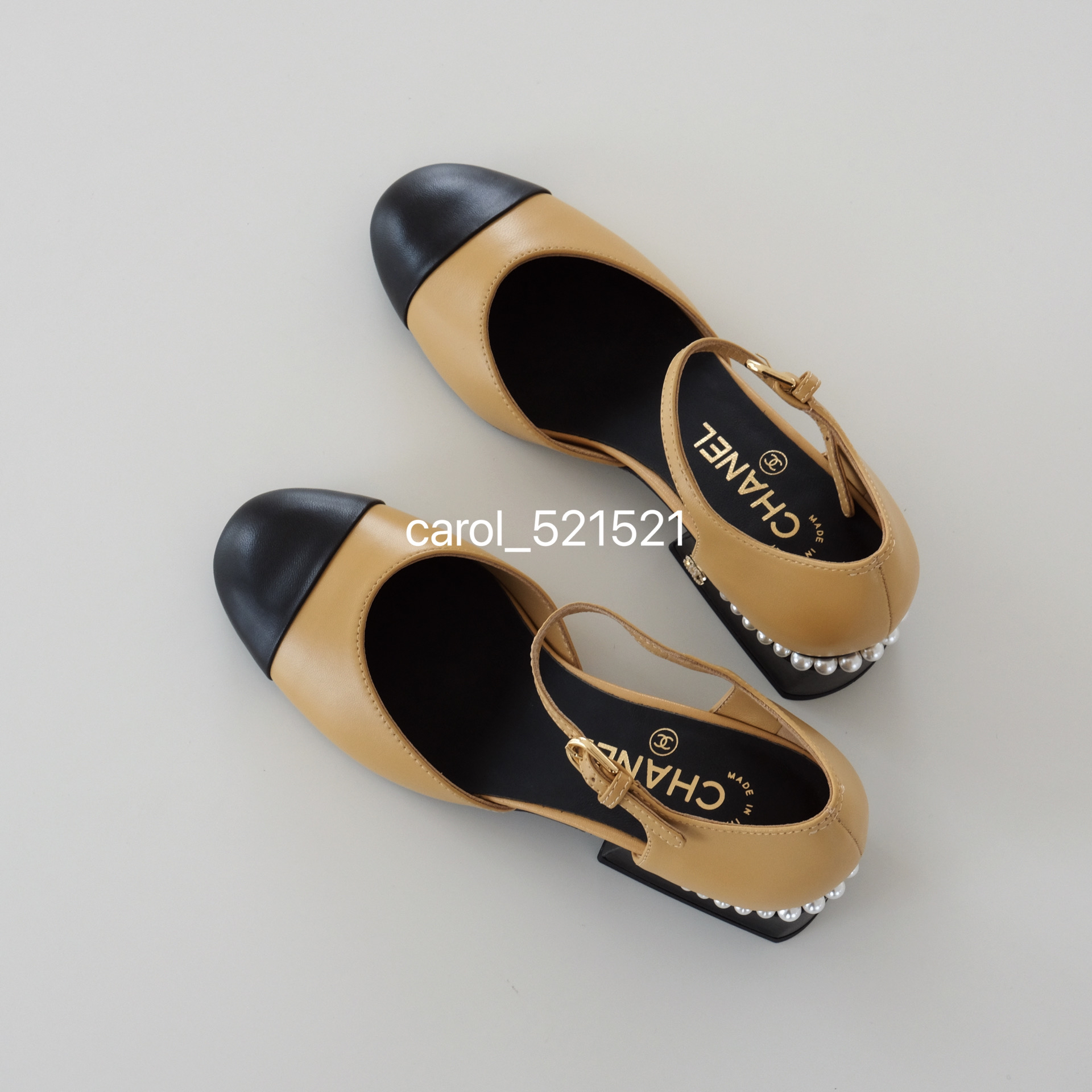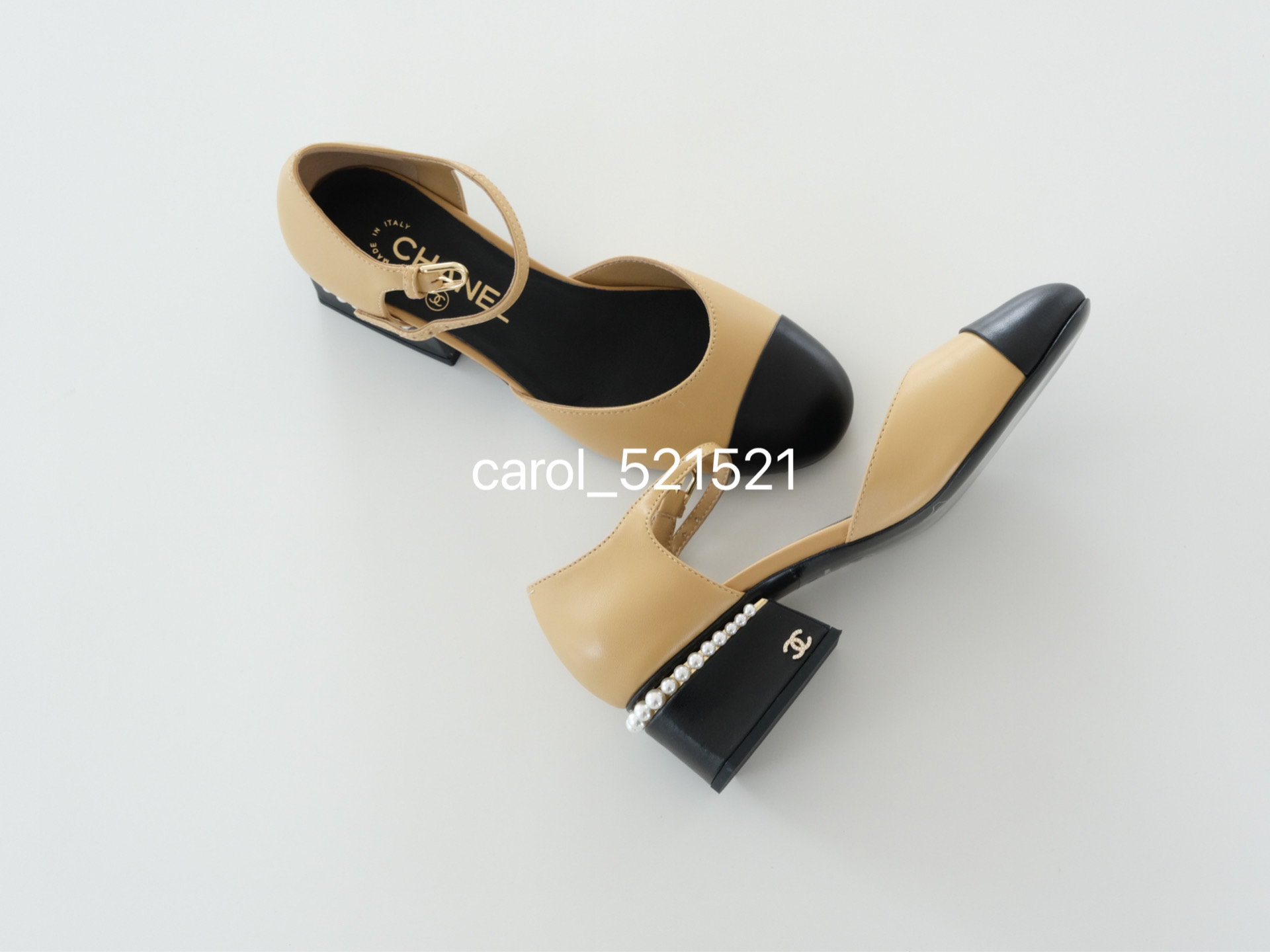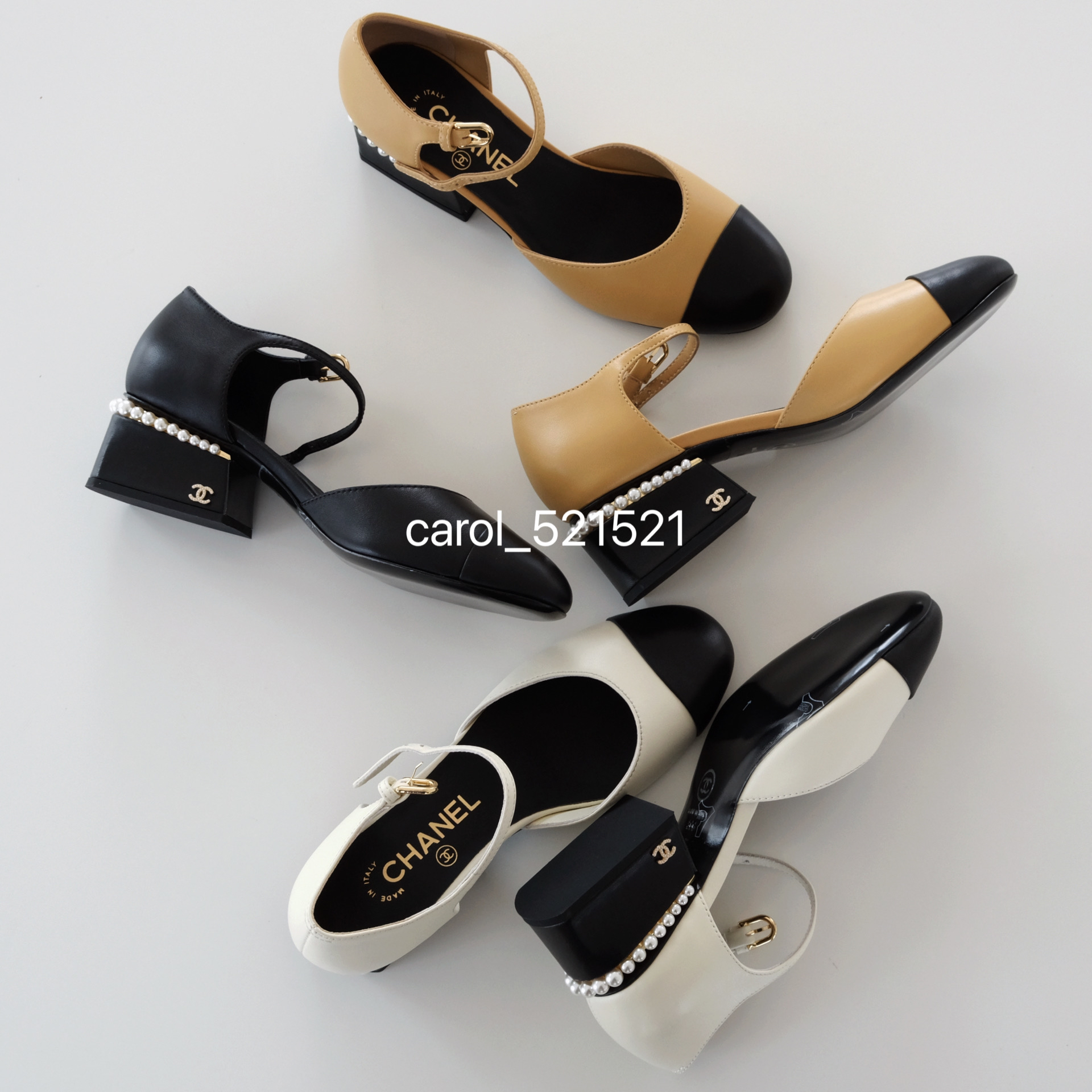春夏新款经典圆包头珍珠粗跟玛丽珍鞋高级百搭经久不衰的"双色鞋"