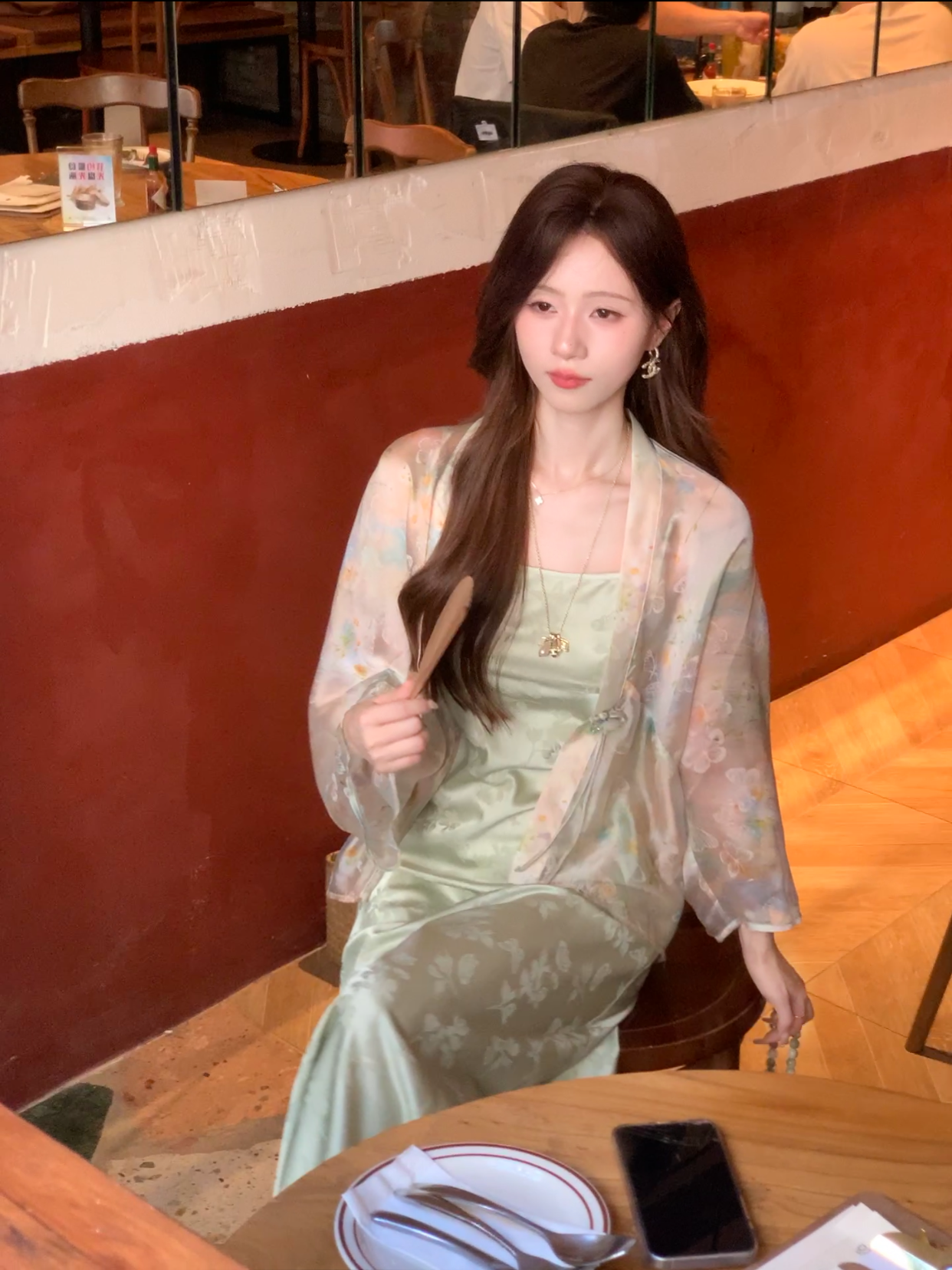 金蘑菇菇【柔光铃兰】设计师高定夏季薄款宽松防晒衫显瘦时髦吊带裙女