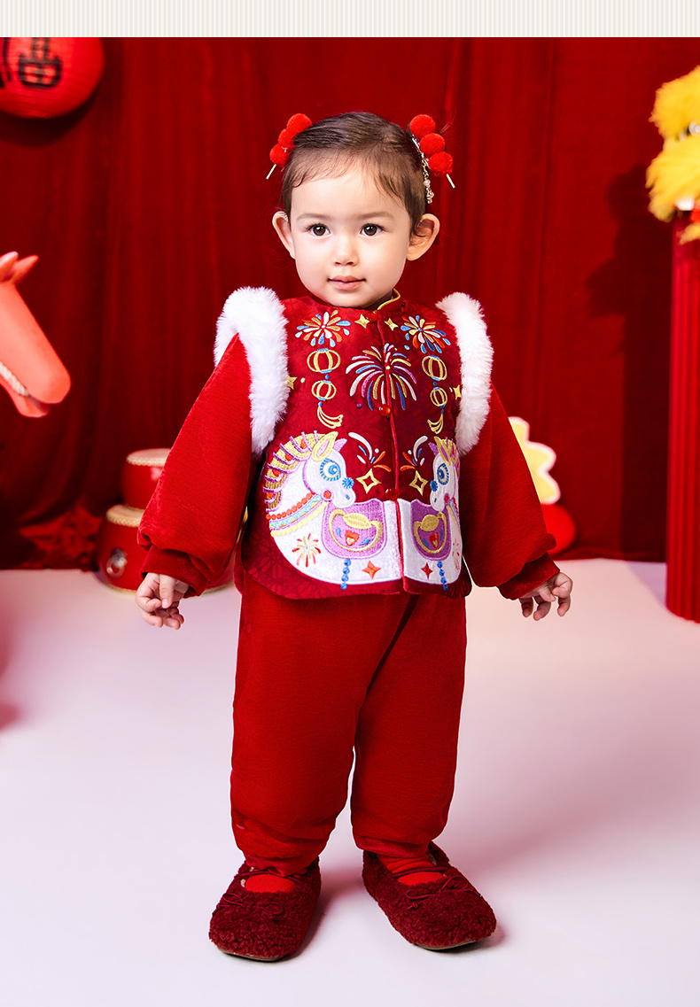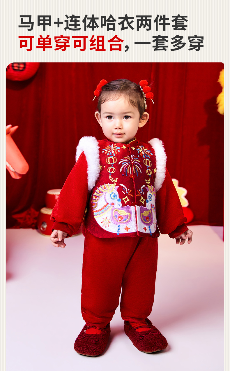 年衣童装婴童套装冬季新款宝宝男女童加棉连体衣喜乐戏马婴童套装