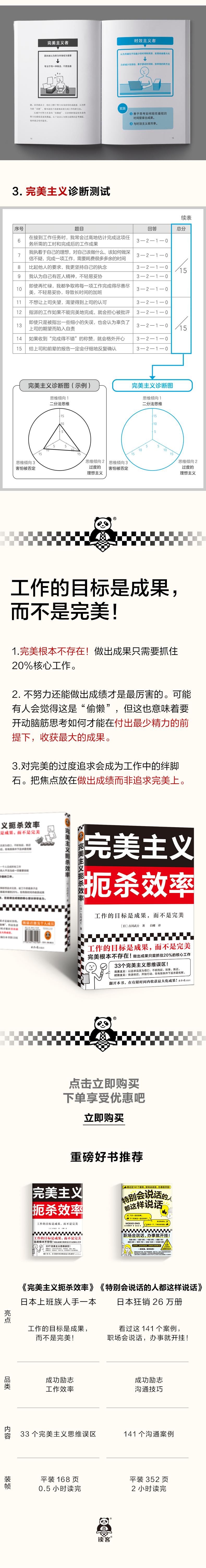 总以追求完美为借口,无论大事小事,一切工作都崇尚严谨,不允许出现任何失误,想靠自己的力量去完成所有工作,结果总在拖延、犹豫、推迟……不仅工作还毫无成果,还把自己折腾得疲惫不堪。要知道,工作的目标是成果,而不是完美。实际上,完美根本不存在。