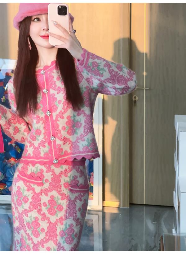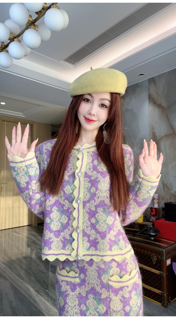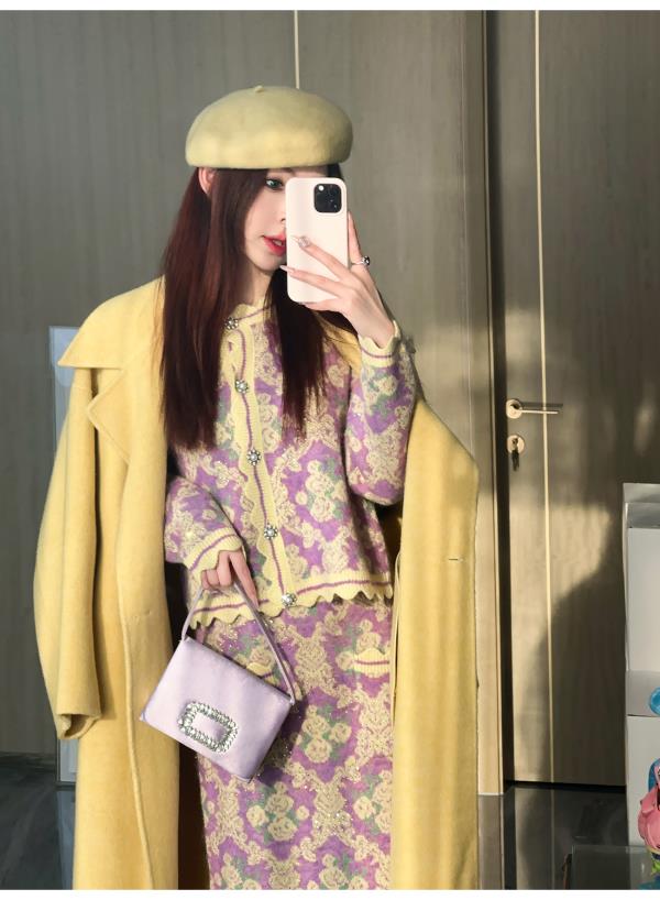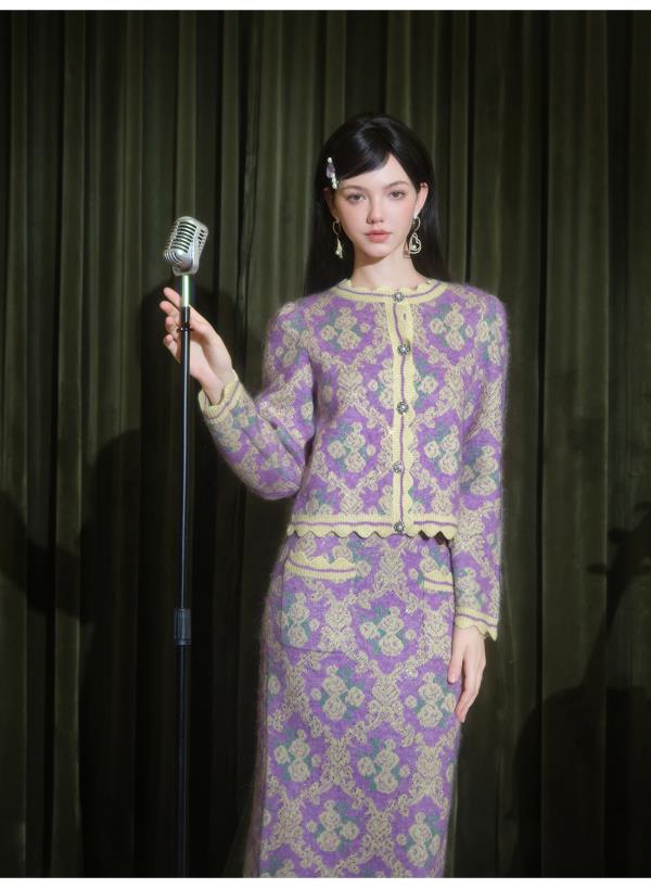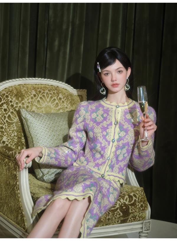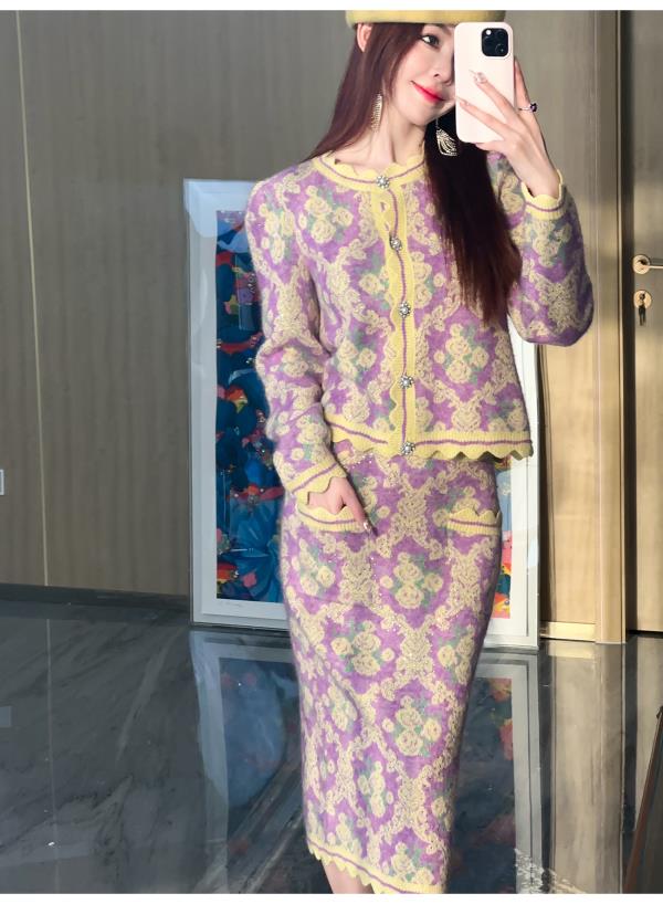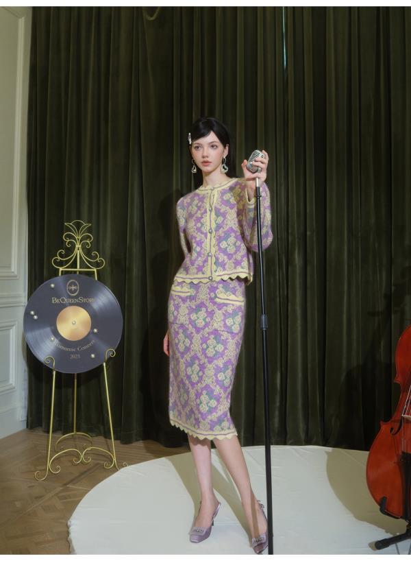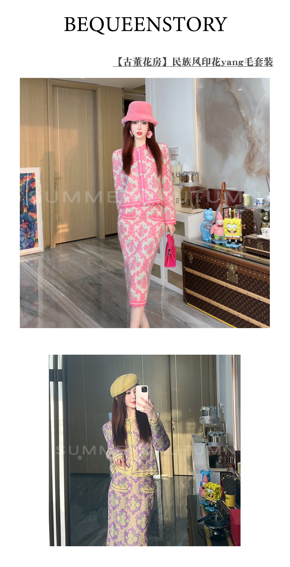 BeQueenStory【古董花房】秋冬长袖印花复古民族风气质羊毛套装女