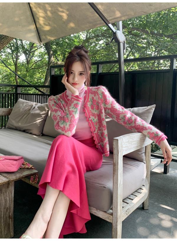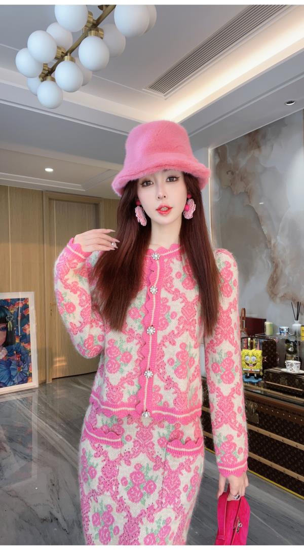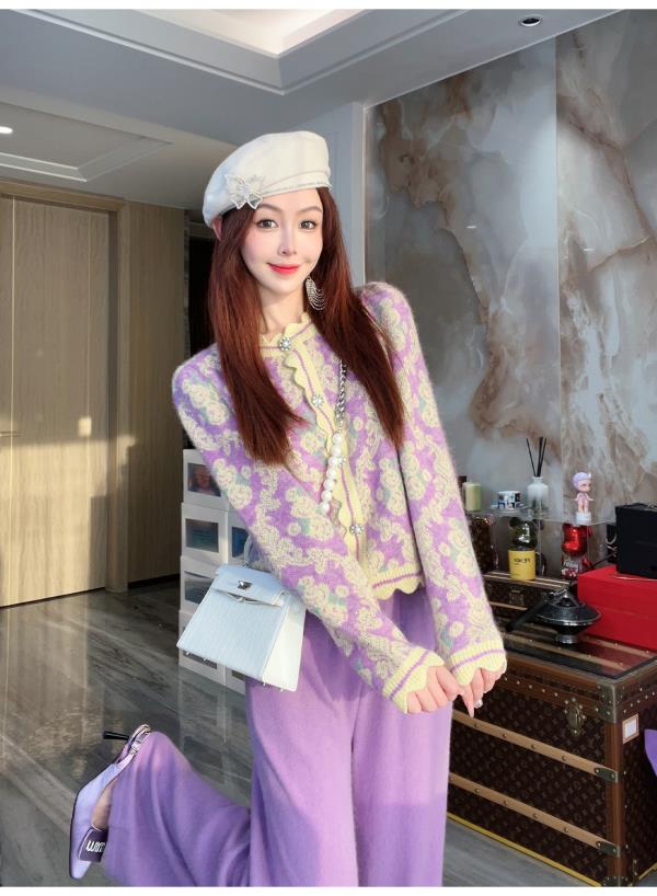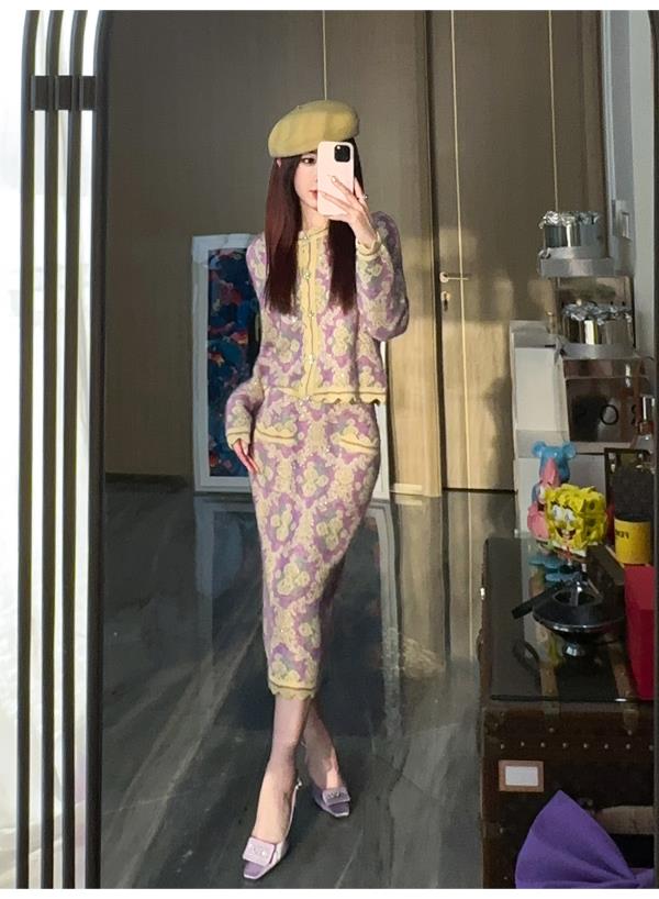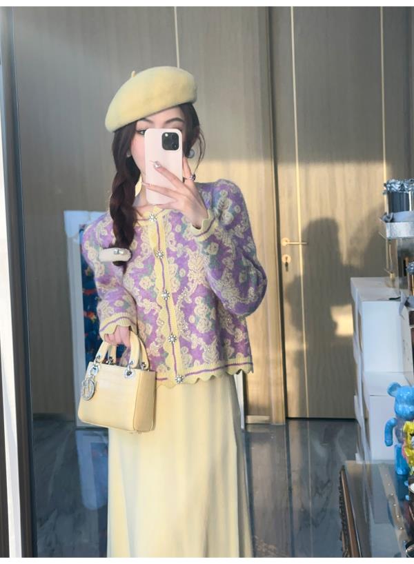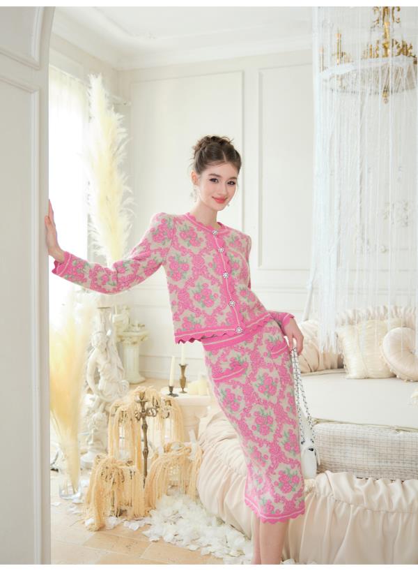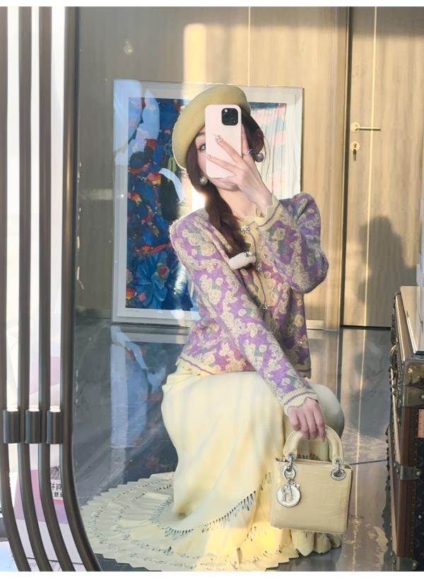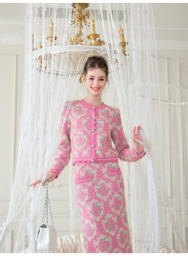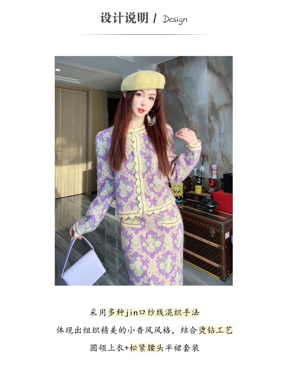BeQueenStory【古董花房】秋冬长袖印花复古民族风气质羊毛套装女