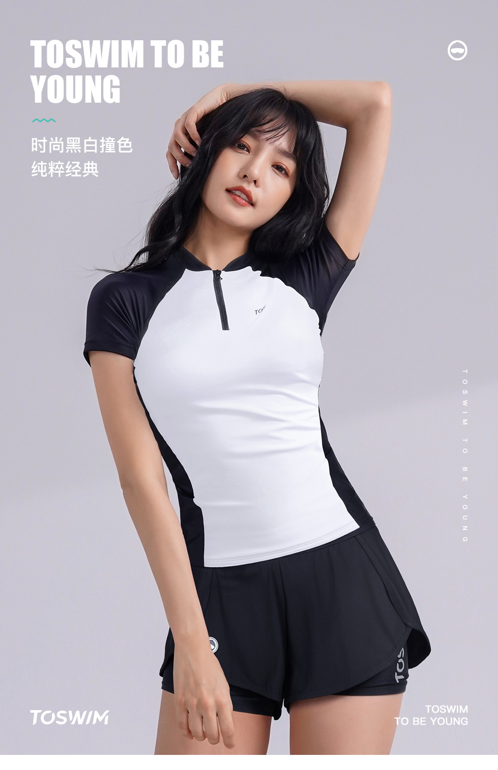 【代发】toswim成人女士泳衣分体平角圆领短袖女款分体泳衣
