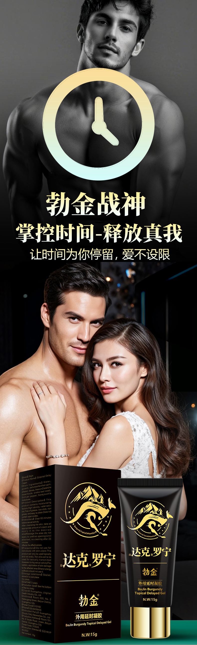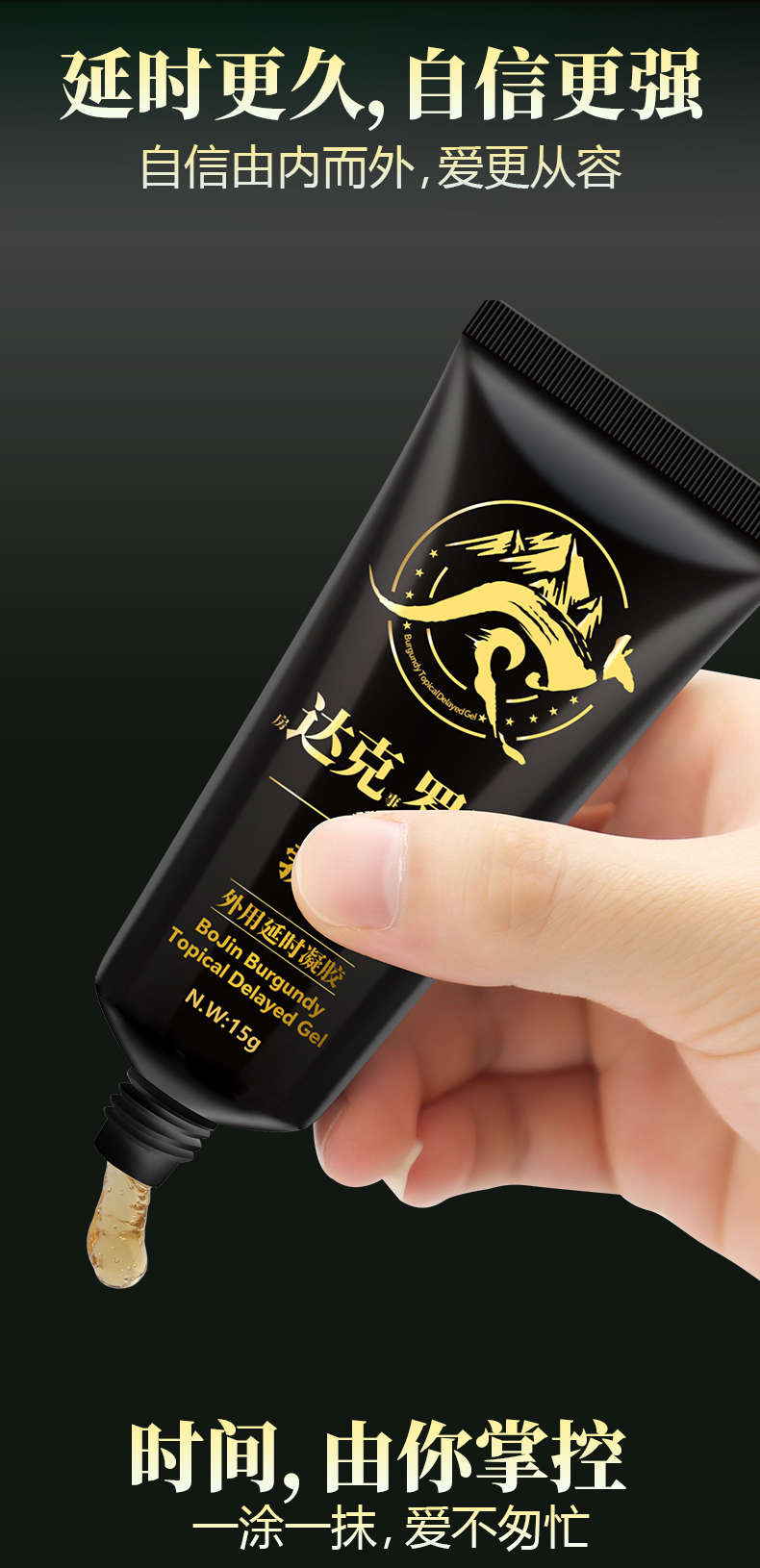 勃金 外用延时凝胶达克罗宁15g夫妻房事控时私处按摩膏阴茎用延迟凝胶