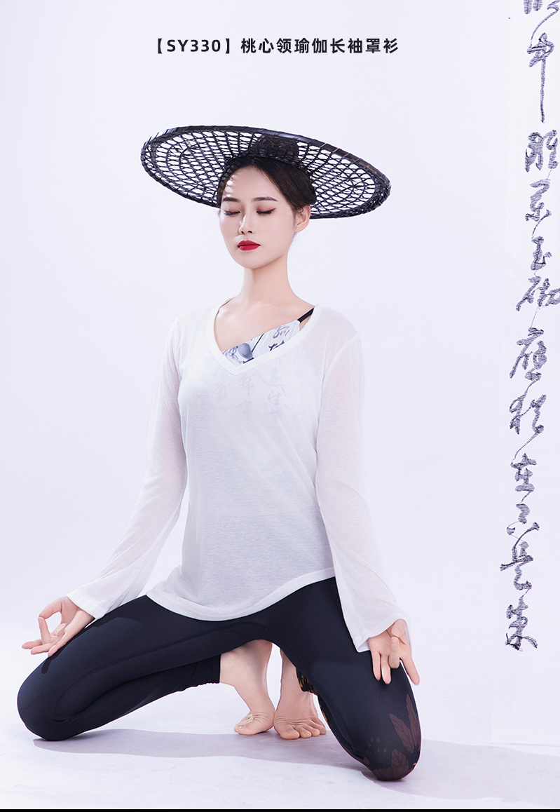 【现货秒发】壁虎瑜伽【2502SY330】桃心领瑜伽长袖罩衫