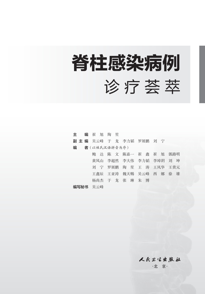 脊柱感染病例诊疗荟萃 崔旭 陶笙 主编 详细阐述脊柱结核误诊行椎体强化术患者的治疗原则和方法 9787117390040 人民卫生出版社