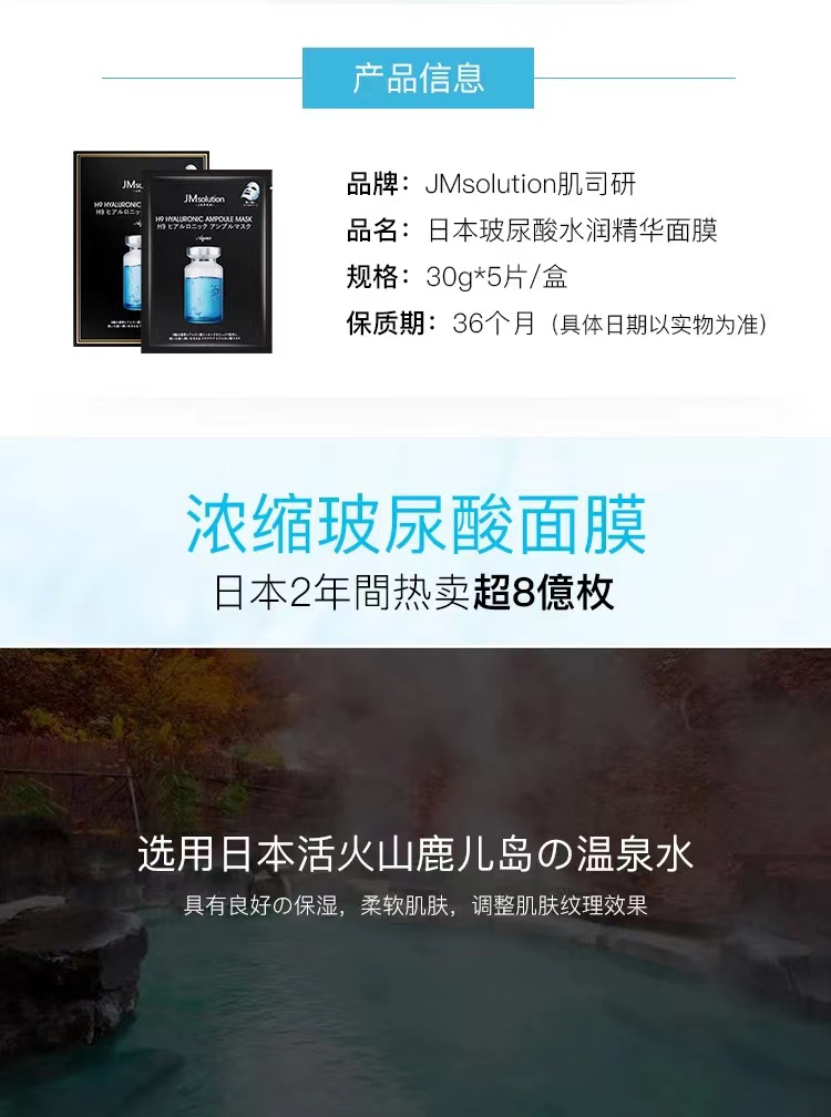 JM面膜女补水保湿玻尿酸安瓶面膜5片/盒日本版