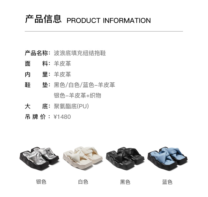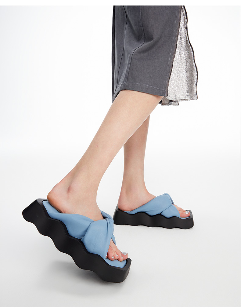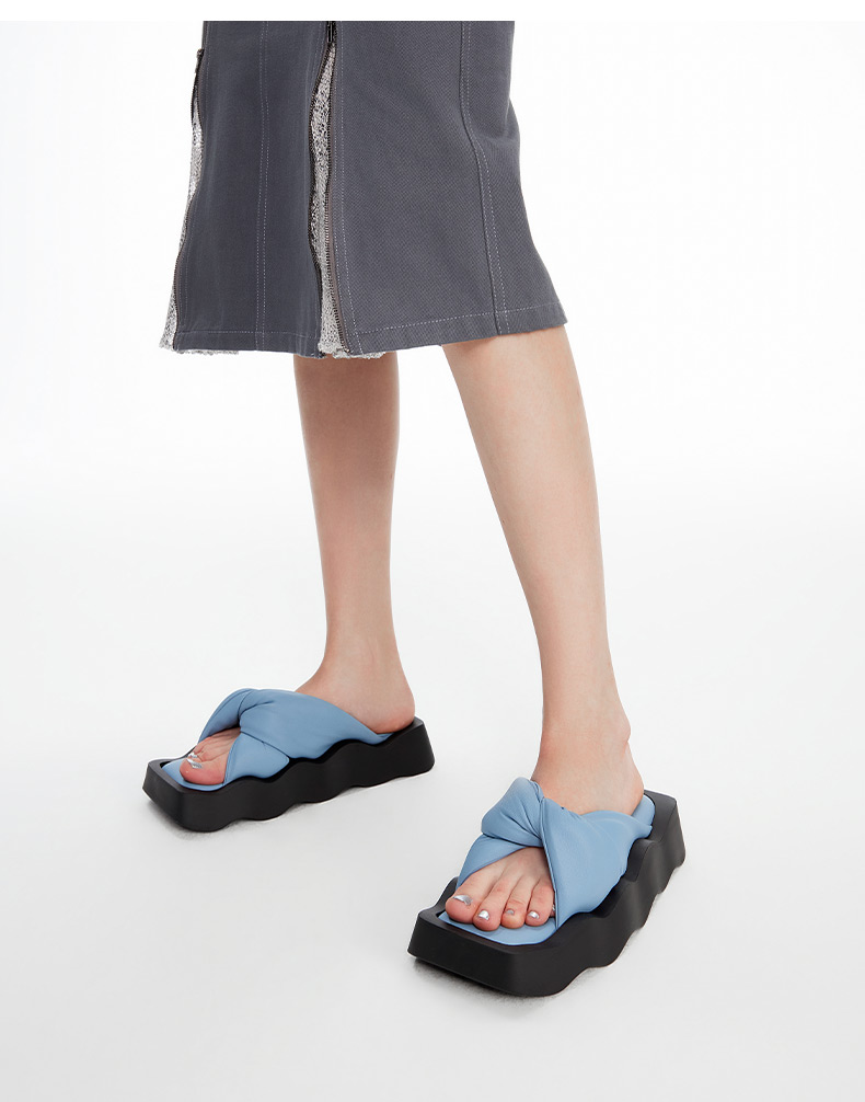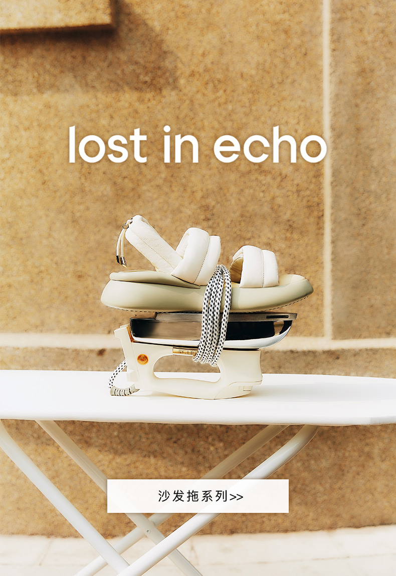 lost in echo2024春夏新品设计师品牌方头波浪底填充纽结沙发拖鞋