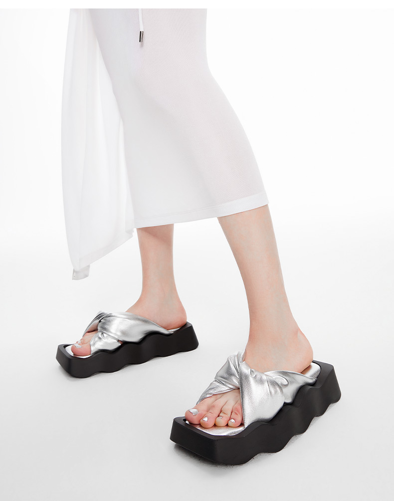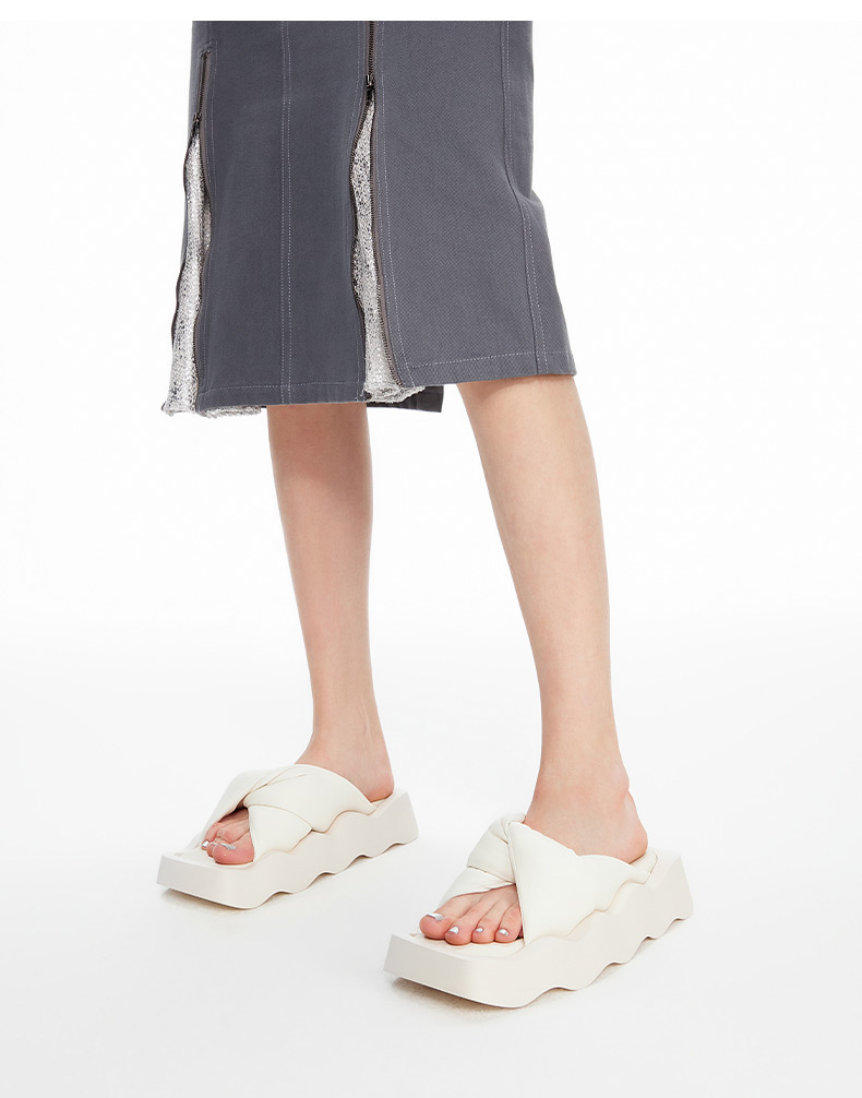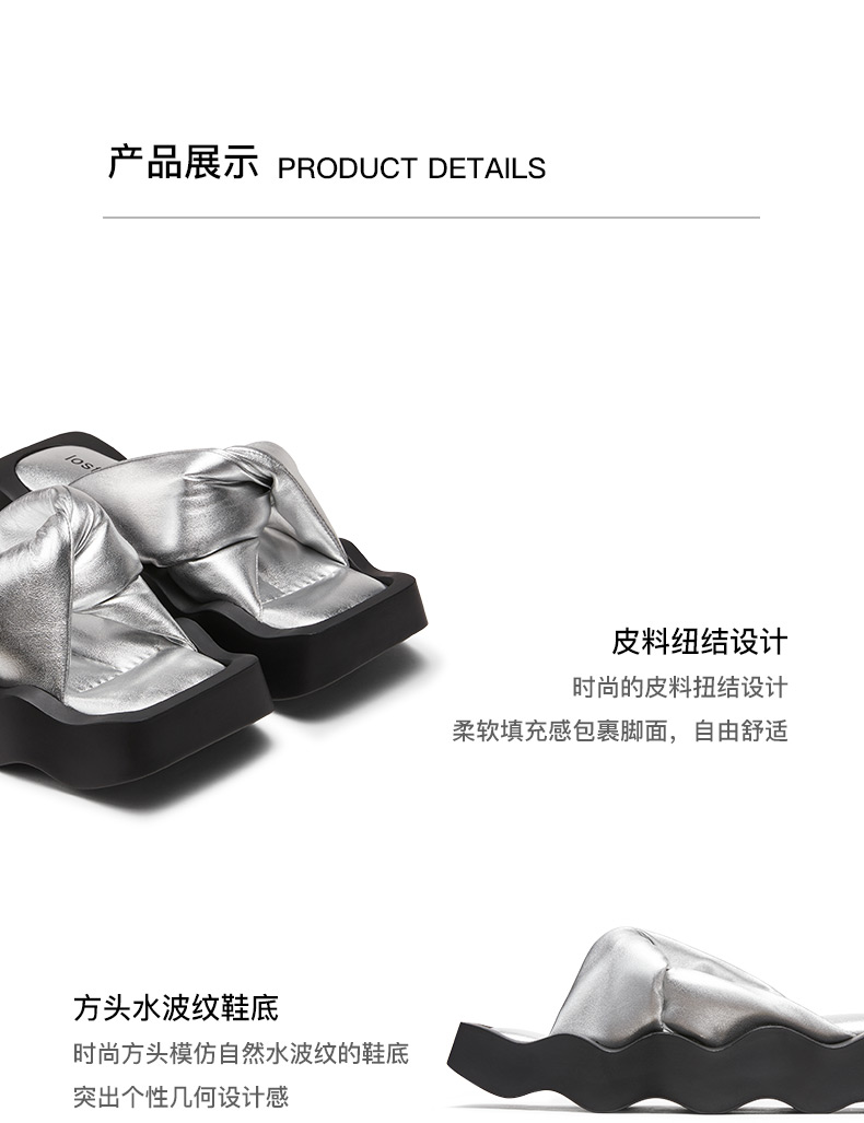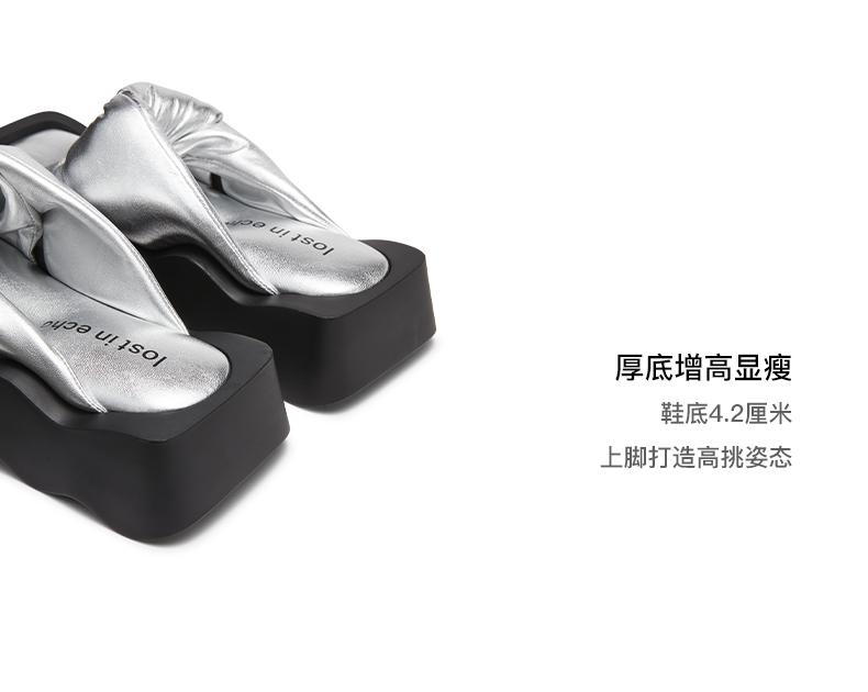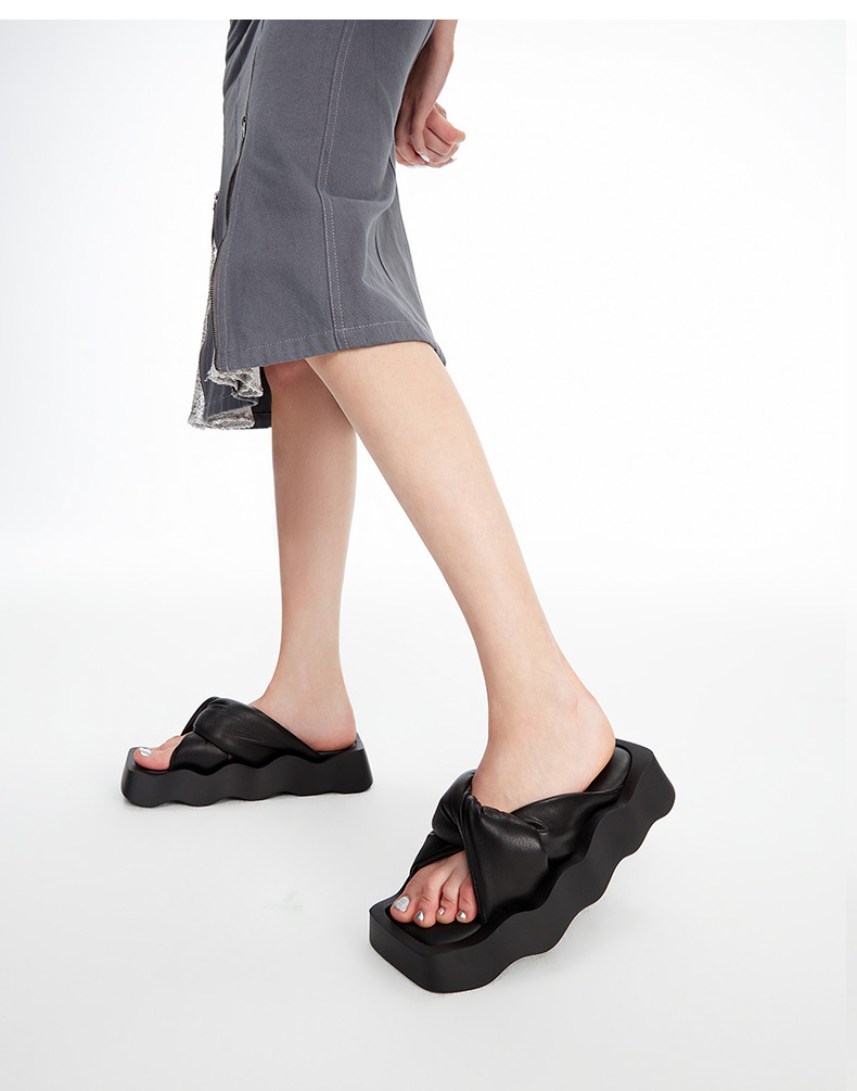 lost in echo2024春夏新品设计师品牌方头波浪底填充纽结沙发拖鞋