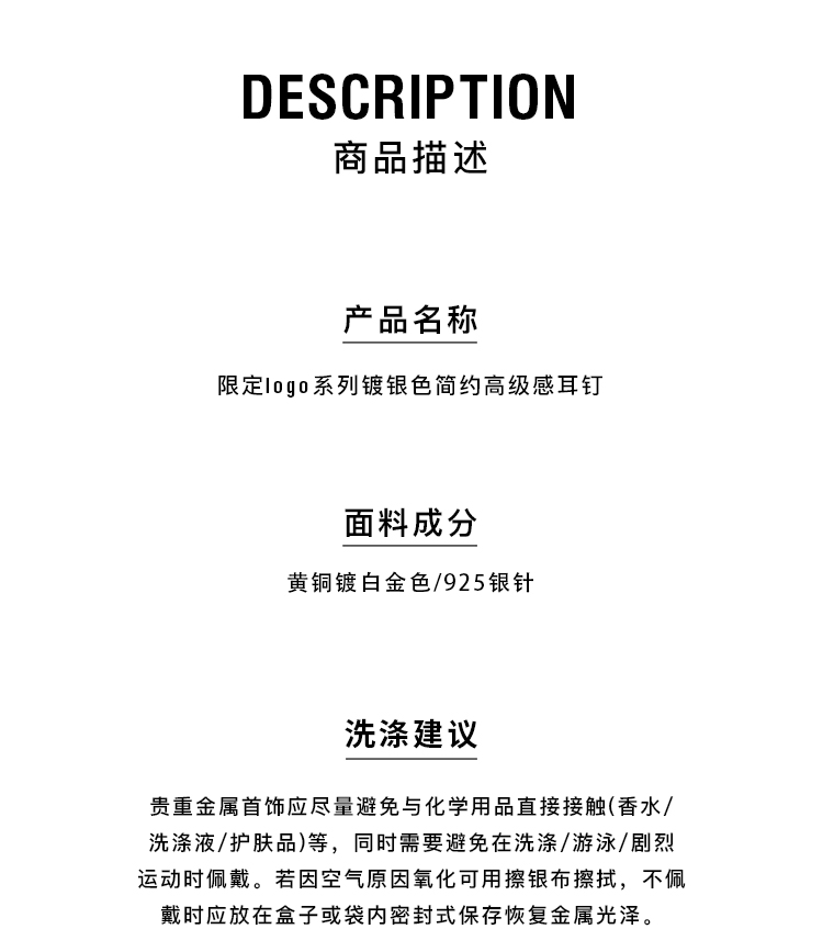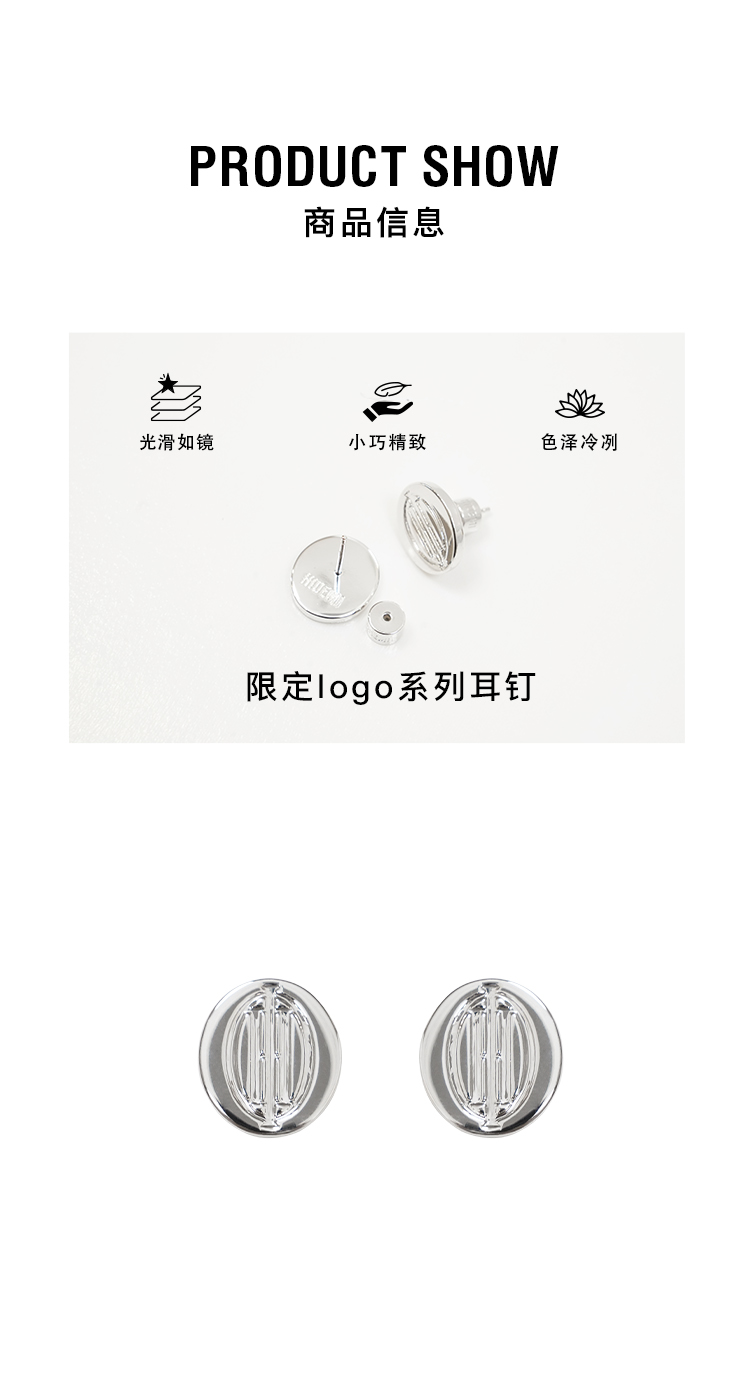 HIDEMI 限定logo系列镀银色简约高级感耳钉