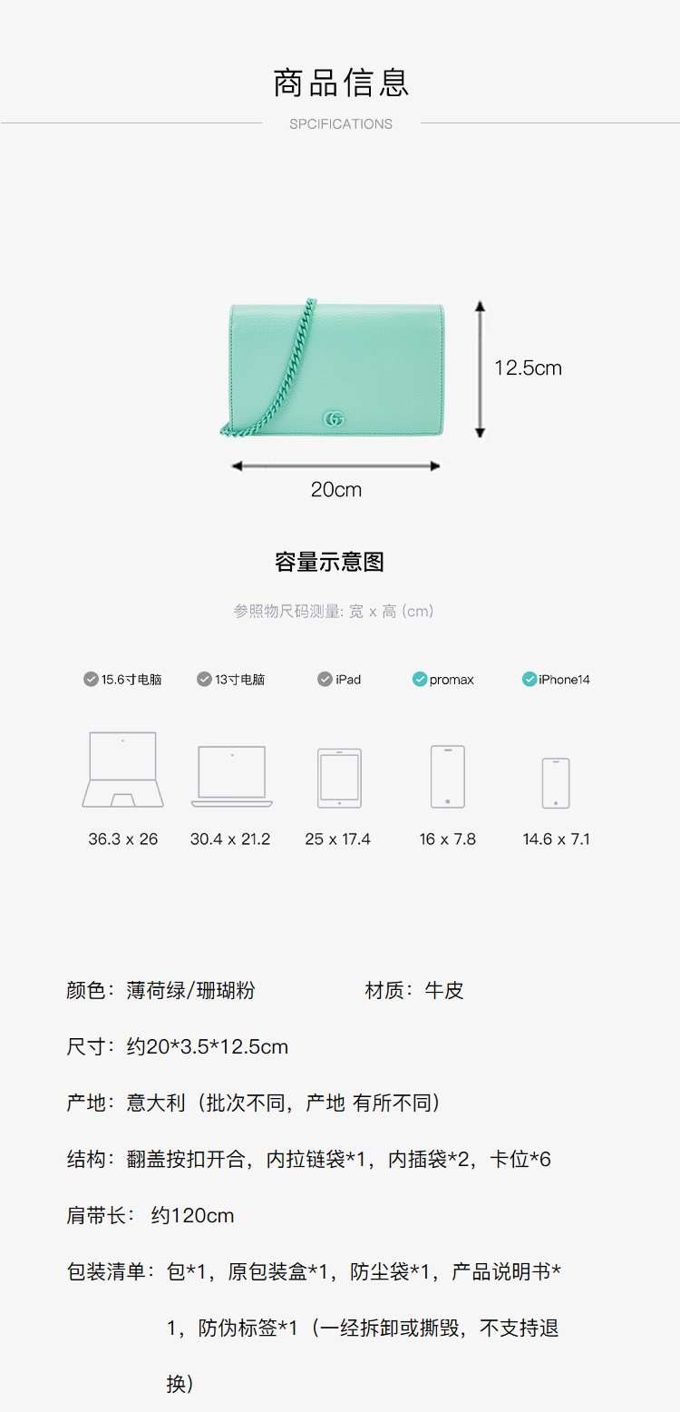 GUCCI 古驰 女士 GG Marmont系列牛皮单肩斜跨迷你链条包 49798517WFF