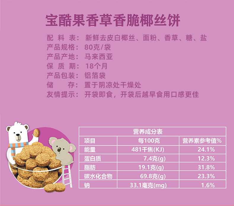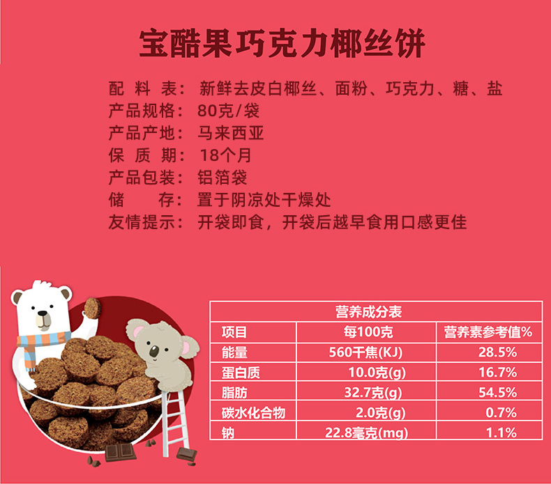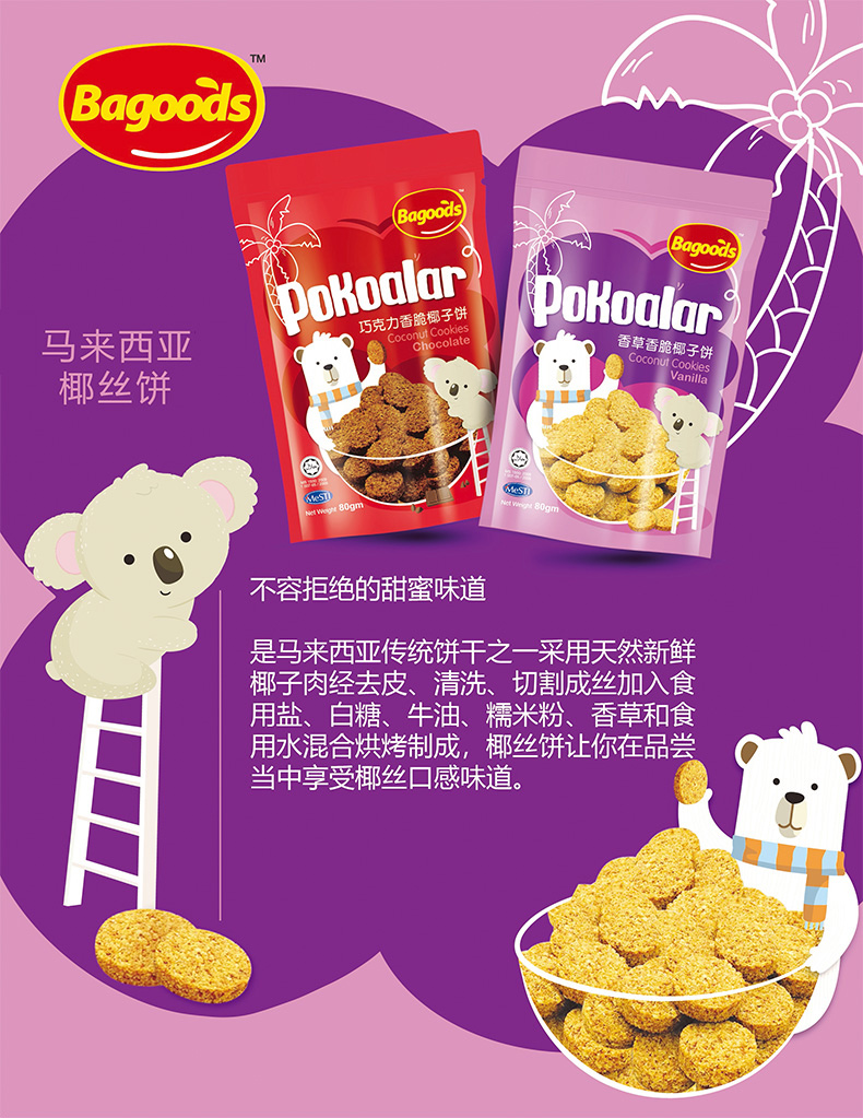pokoalar宝酷果香脆椰丝饼 马来西亚经典风味 香草味/可可味