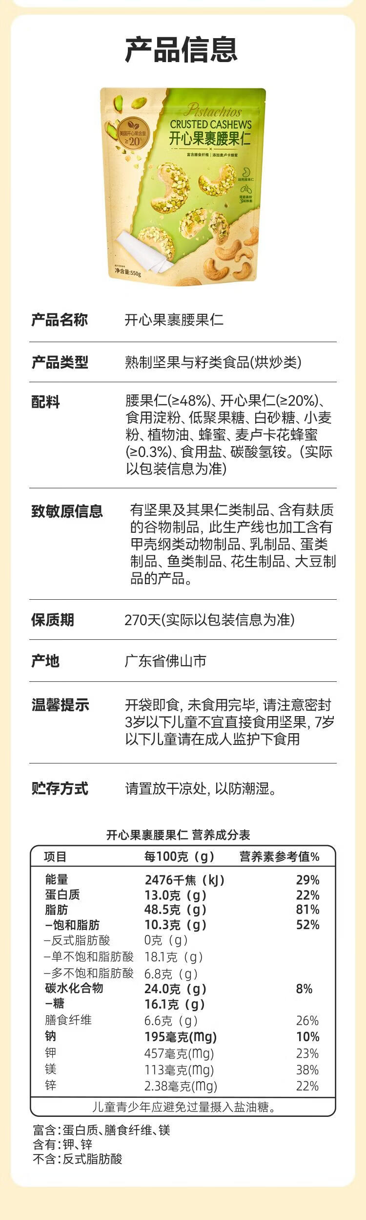 【山姆限定】开心果裹腰果仁 约14g/袋