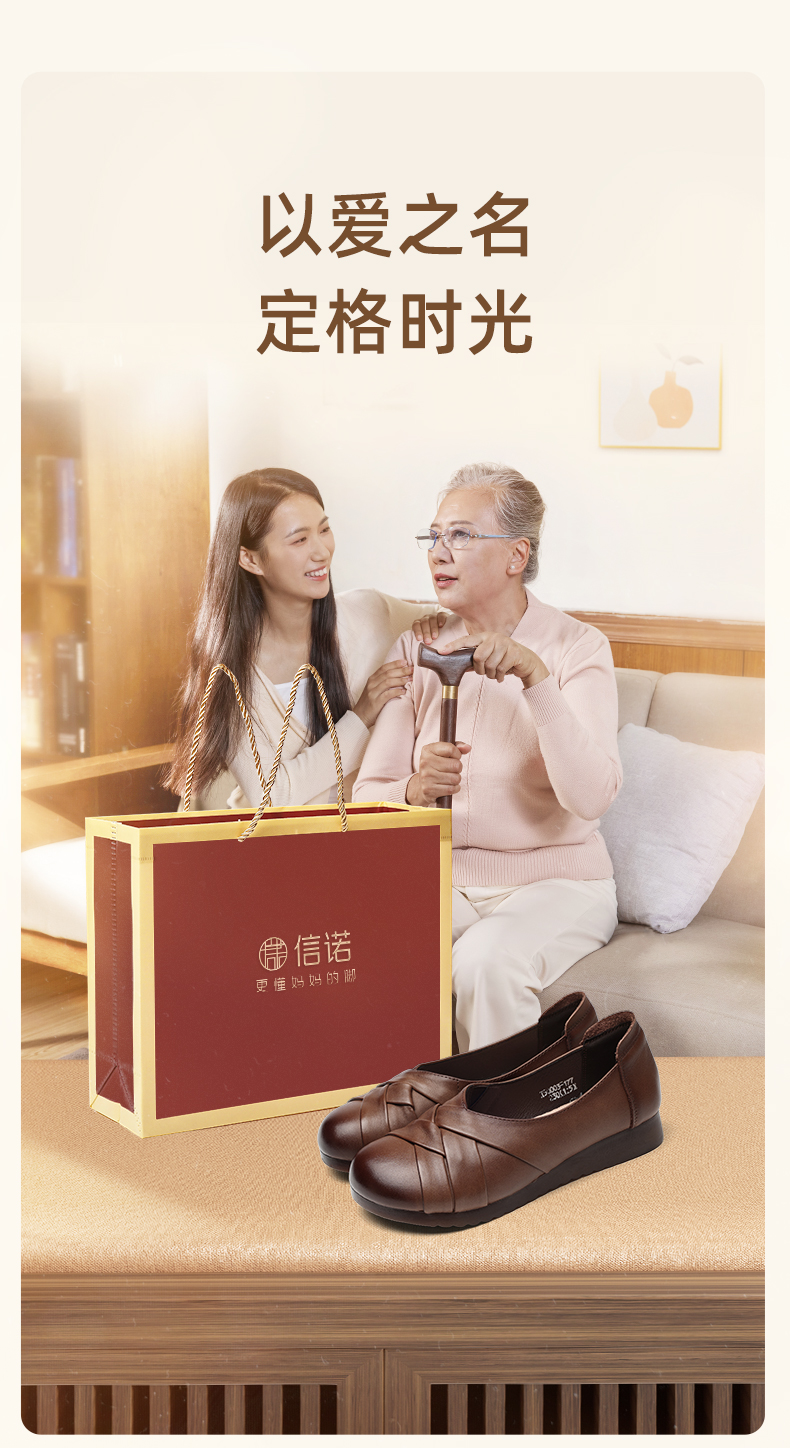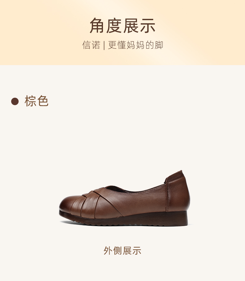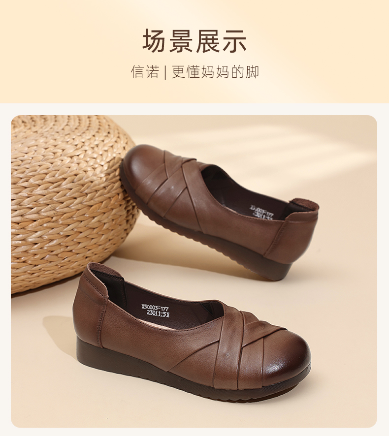 信诺真皮妈妈鞋舒适休闲中老年女士单鞋软底老人鞋子2025新款秋季X5Q003-177