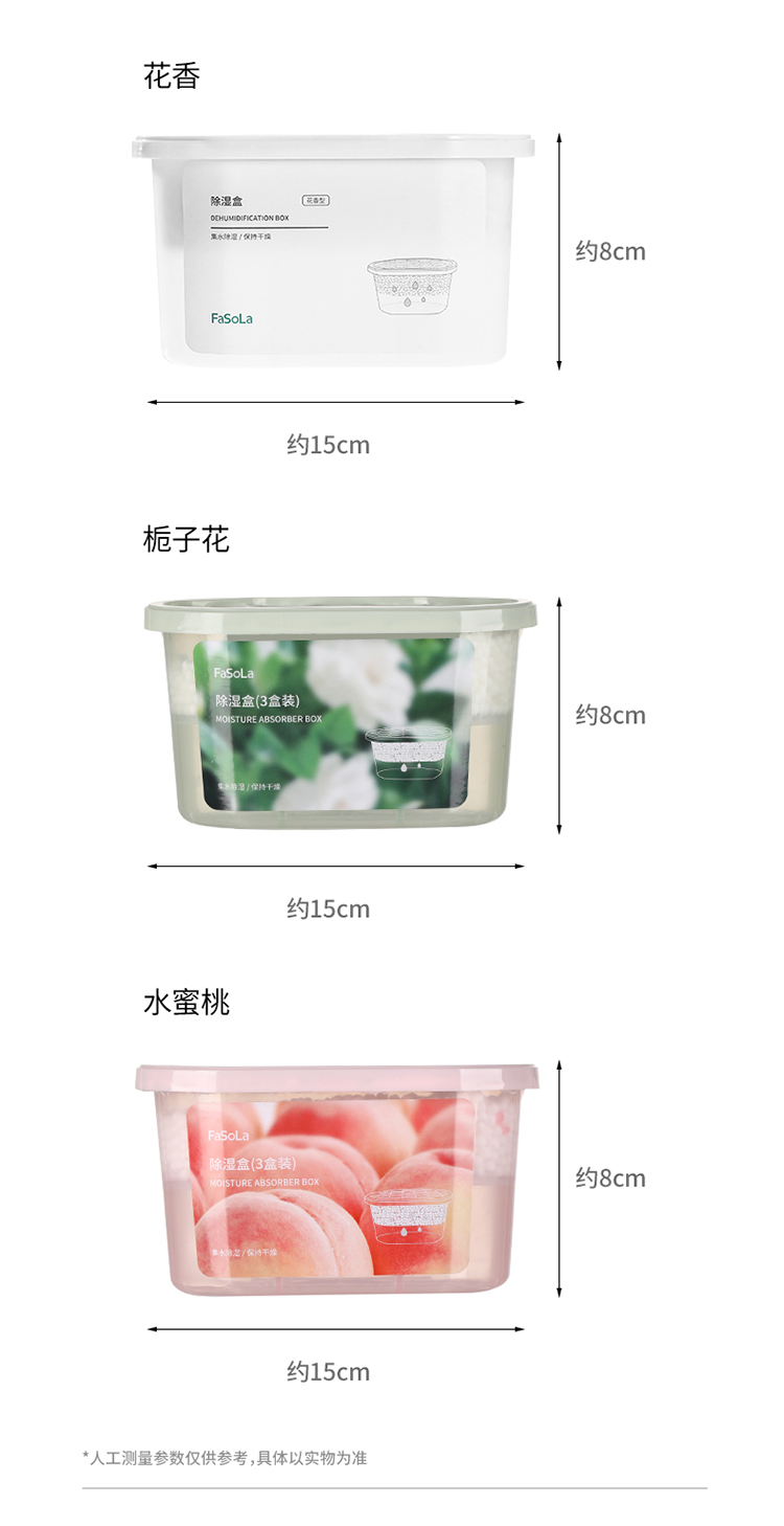 FaSoLa 室内防潮干燥剂衣柜除湿盒吸湿袋防霉空气抽湿剂 3盒装