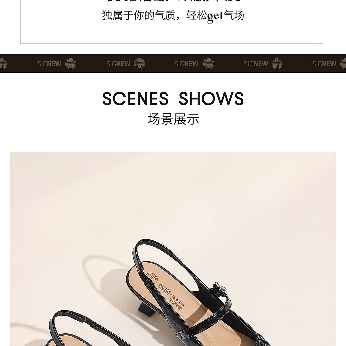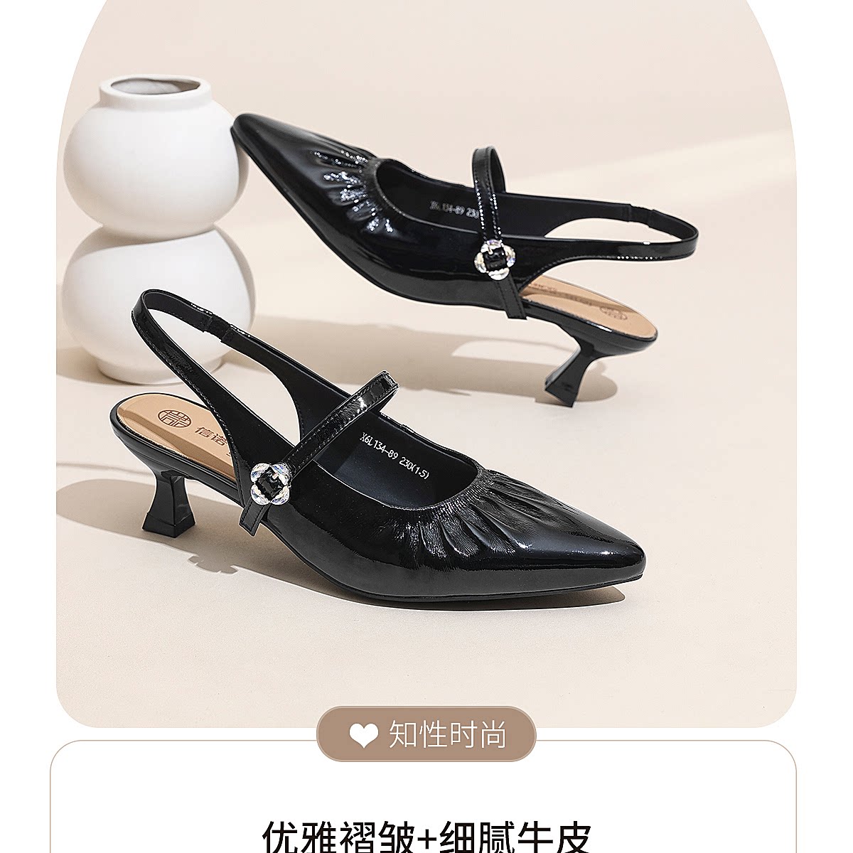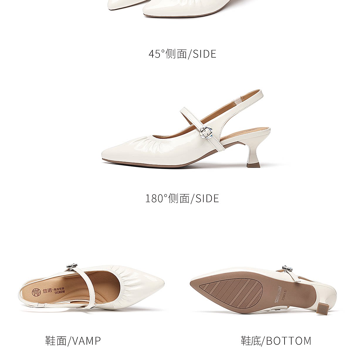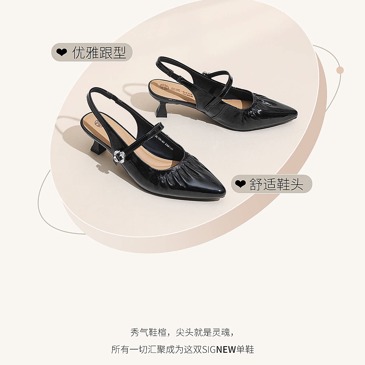 信诺真皮女鞋2026夏季新款百搭时尚软底舒适细跟尖头法式时装凉鞋X6L134-86
