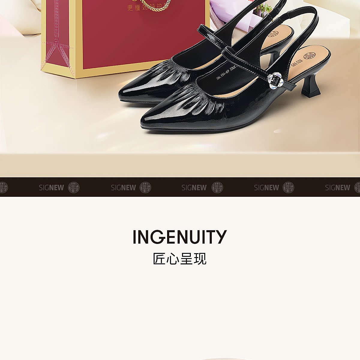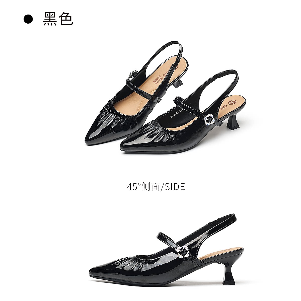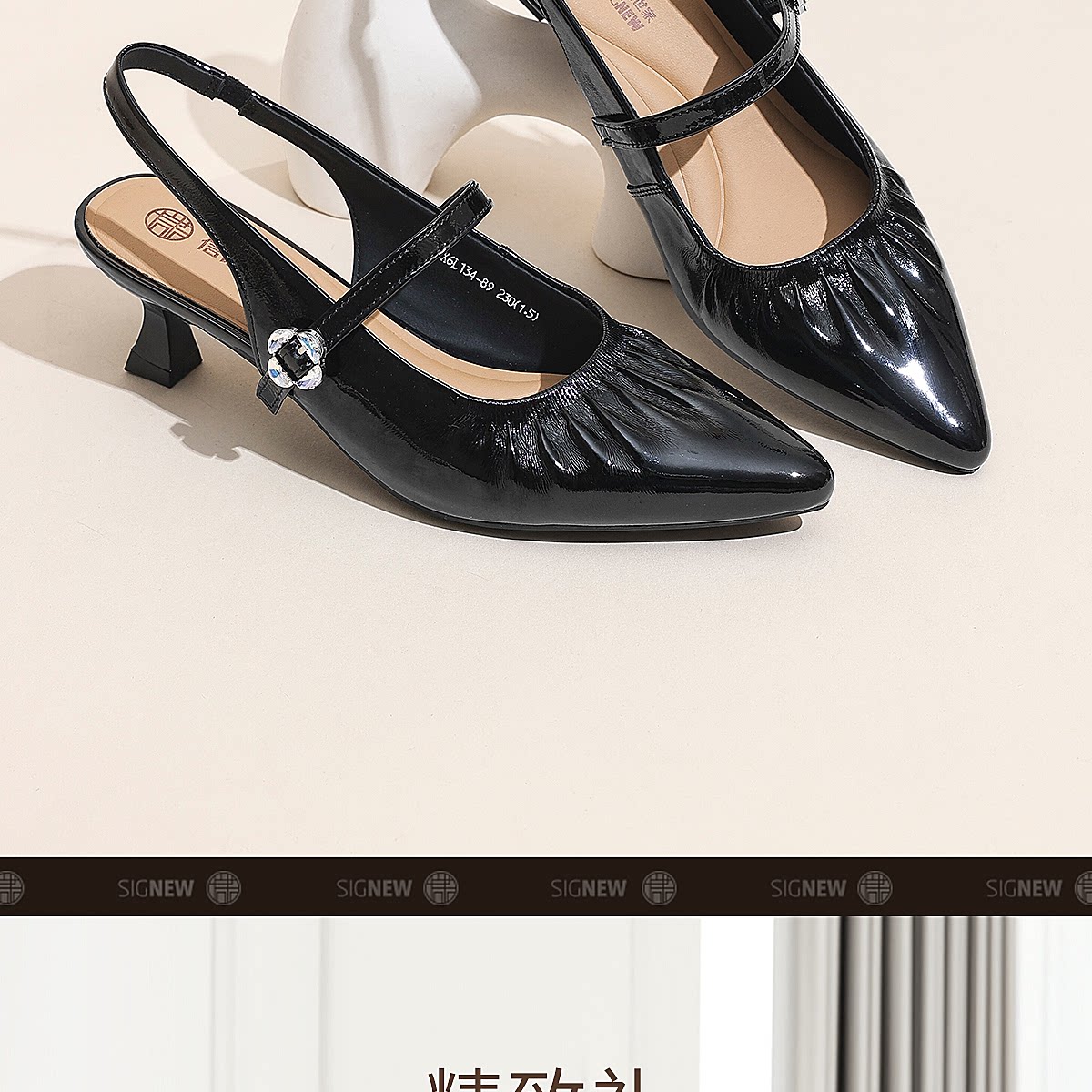 信诺真皮女鞋2026夏季新款百搭时尚软底舒适细跟尖头法式时装凉鞋X6L134-86