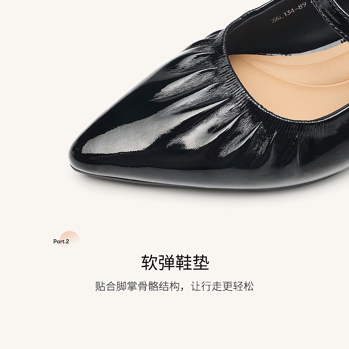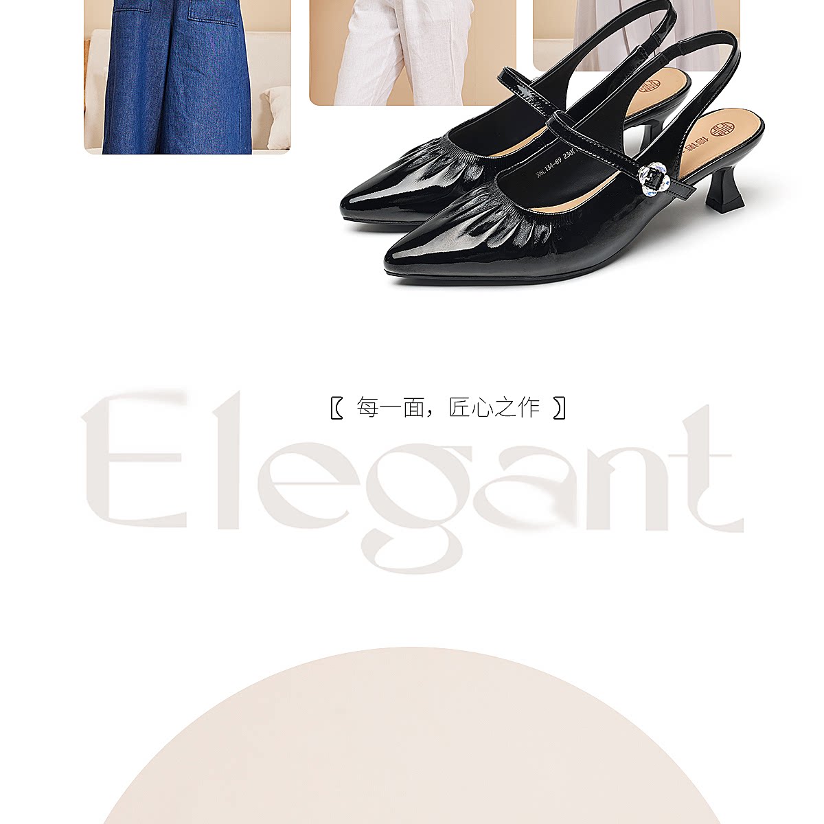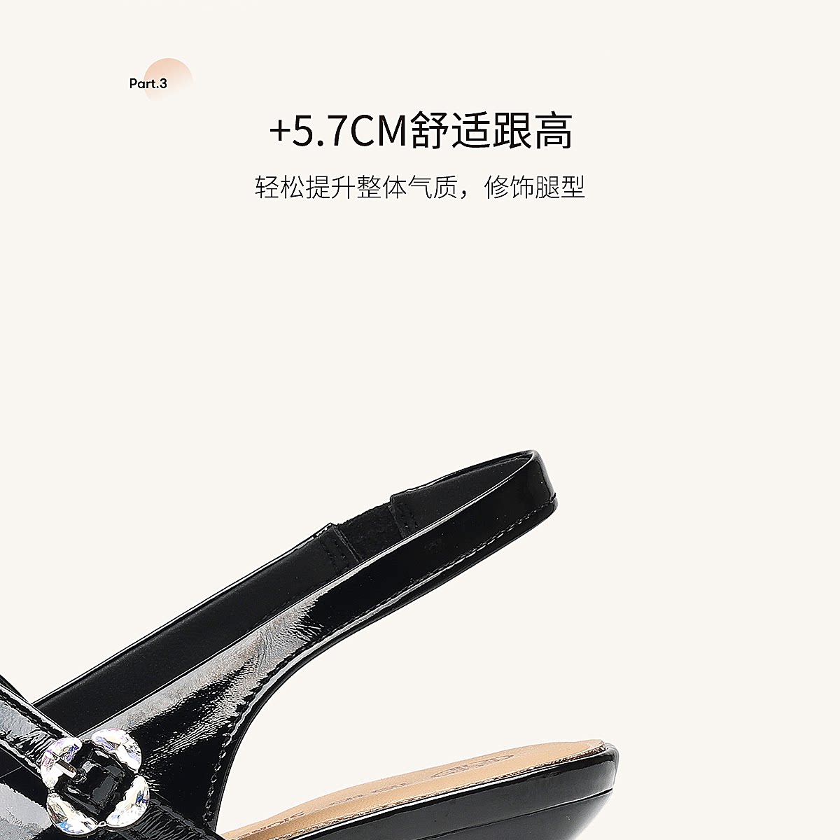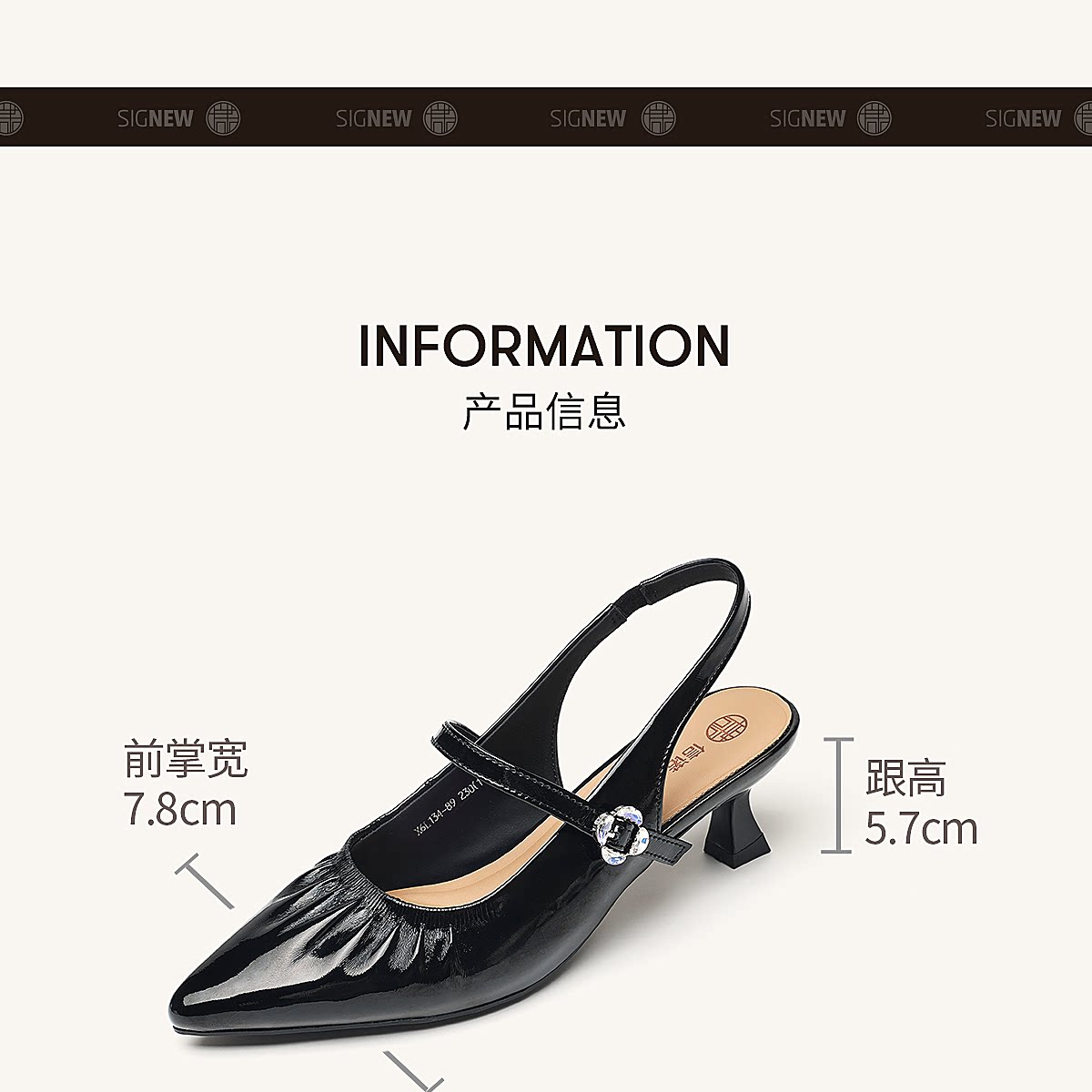 信诺真皮女鞋2026夏季新款百搭时尚软底舒适细跟尖头法式时装凉鞋X6L134-86